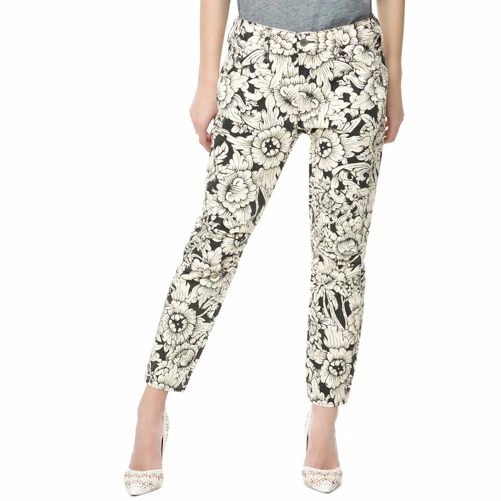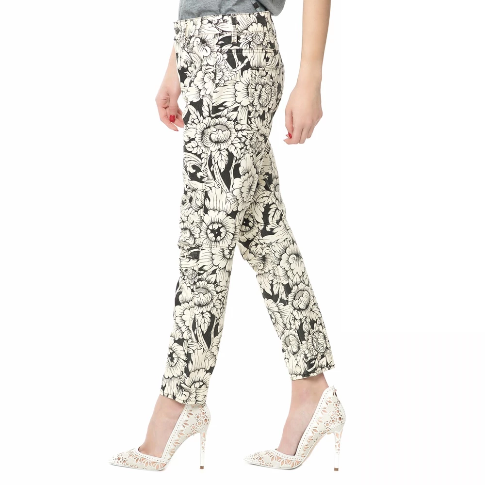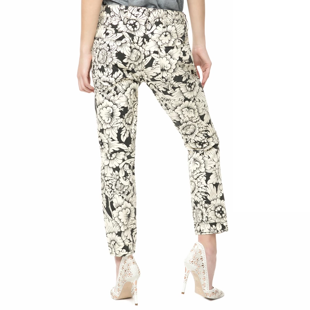 Γυναικείο παντελόνι σε μαύρο και εκρού απόχρωση με φλοράλ print, boyfriend γραμμή και χαμηλό καβάλο. Άνετο και μοντέρο για all day εμφανίσεις.