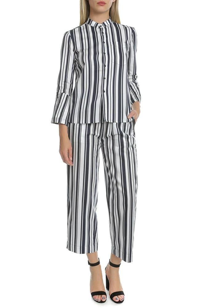 Κλασικό και άνετο γυναικείο παντελόνι G-Star σε loose γραμμή, με ρίγες σε μαύρο και λευκό χρώμα και μήκος μέχρι τη μέση της γάμπας. Συνδύασέ το με λευκό πουκάμισο για τέλειο look στο γραφείο και τη βόλτα.