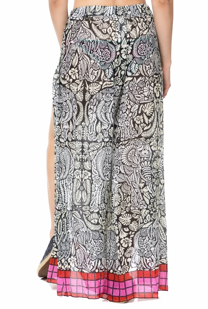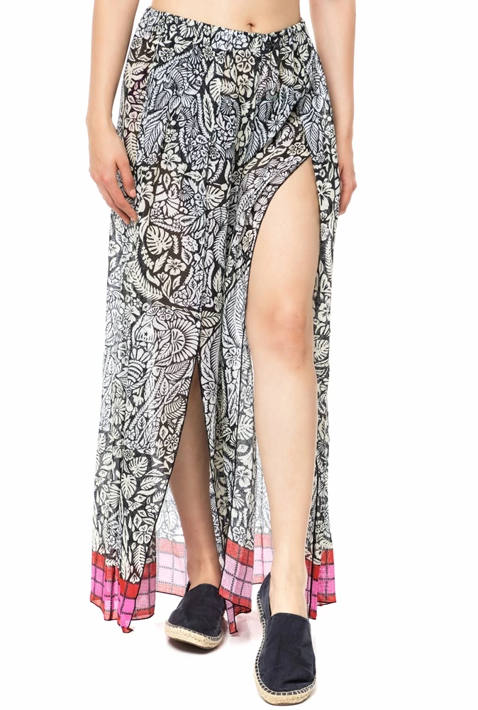Γυναικεία αέρινη παντελόνα για την παραλία με μεγάλα ανοίγματα μπροστά., Σε ασπρόμαυρο χρώμα και print από λουλούδια. Μία εναλλακτική πρόταση αντί για το παρεό σου.