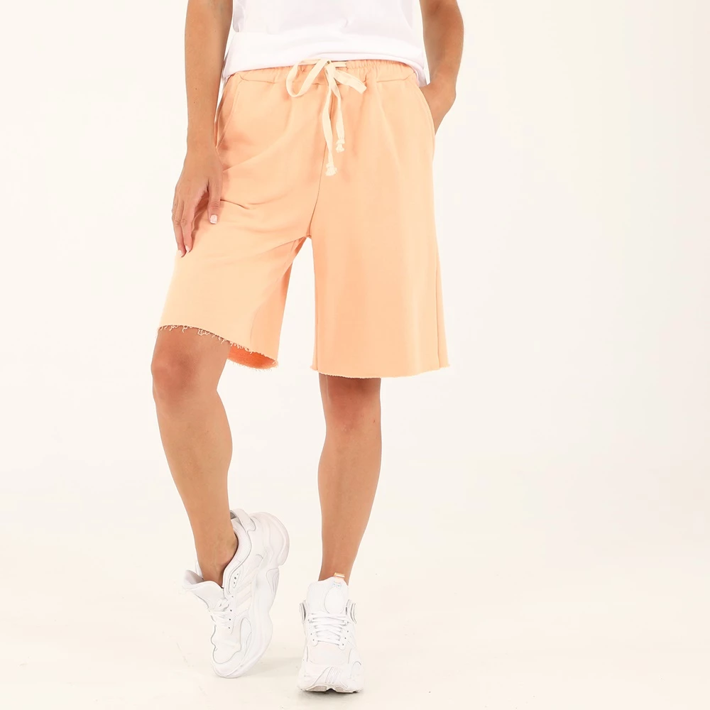 Γυναικεία μακριά βερμούδα ATTRATTIVO σε σομόν απόχρωση. Από βαμβακερή σύνθεση, σε ίσια γραμμή. Διαθέτει λάστιχο με κορδόνι στη μέση, δύο τσέπες στα πλάγια και ξέφτια στο τελείωμα.