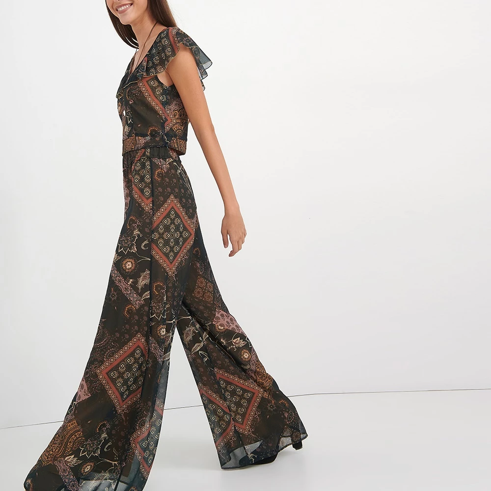 Γυναικεία παντελόνα ATTRATTIVO σε χακί απόχρωση, με έθνικ και floral μοτίβα σε όλη την επιφάνεια. Σε φαρδιά γραμμή, με λάστιχο στη μέση.