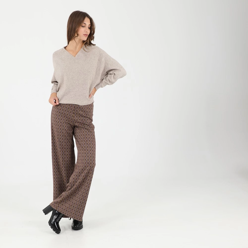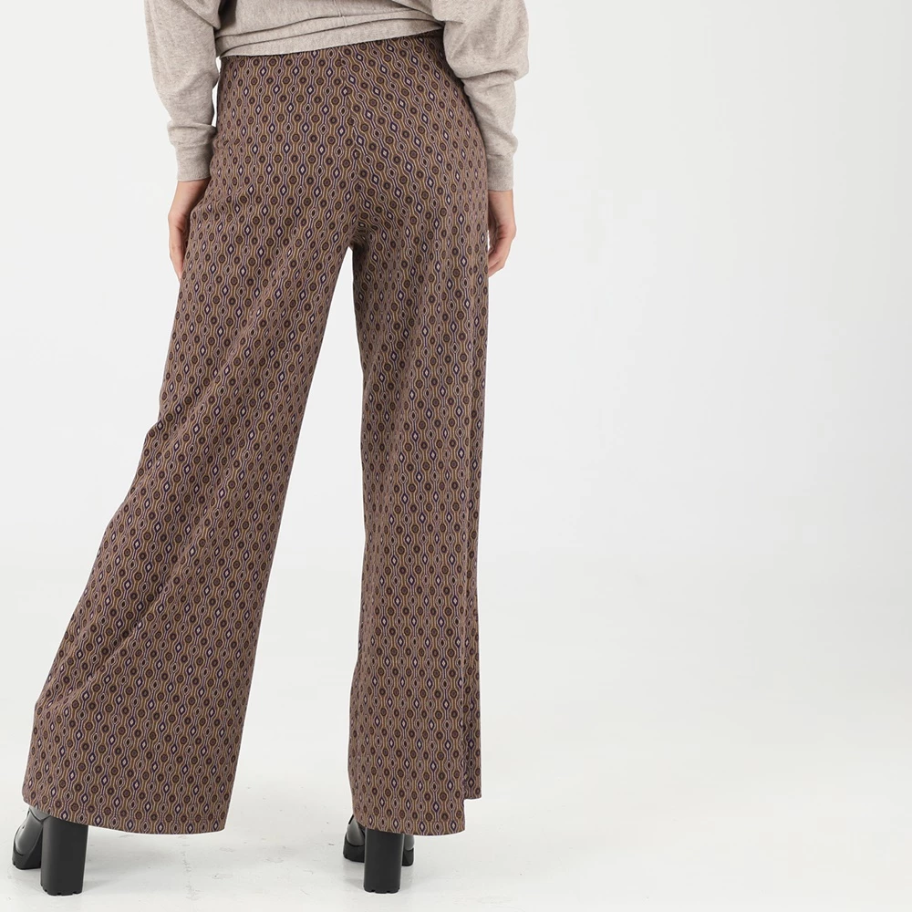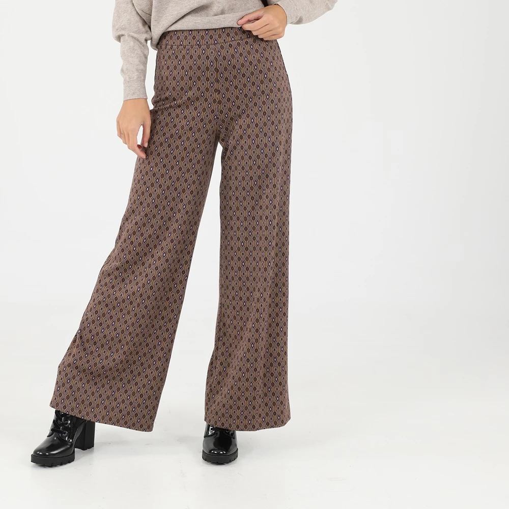 Γυναικεία παντελόνα ATTRATTIVO σε καφέ απόχρωση, με πολύχρωμο γεωμετρικό μοτίβο. Σε άνετη γραμμή, με λάστιχο στη μέση για άνετη εφαρμογή.