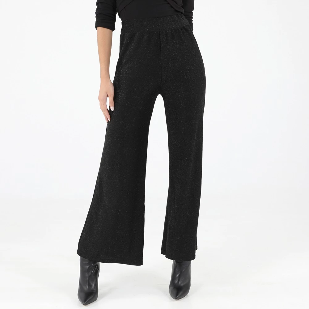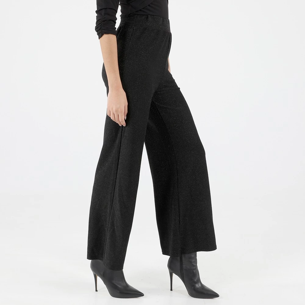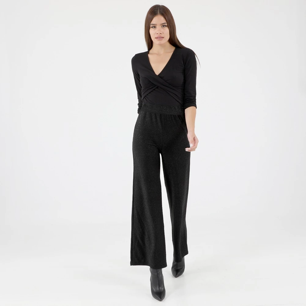 Γυναικεία παντελόνα ATTRATTIVO σε μαύρο χρώμα με ασημί μεταλλική κλοστή. Είναι ψηλόμεση, με άνετη εφαρμογή και μήκος πάνω από τον αστραγαλό. Διαθέτει φαρδύ λάστιχο στην μέση.