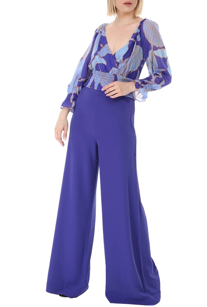 Γυναικεία παντελόνα GUESS MARCIANO σε μπλε απόχρωση. Είναι ψηλόμεση, σε φαρδιά γραμμή, με χυτή εφαρμογή. Κλείνει με κρυφό φερμουάρ στο πλάι.