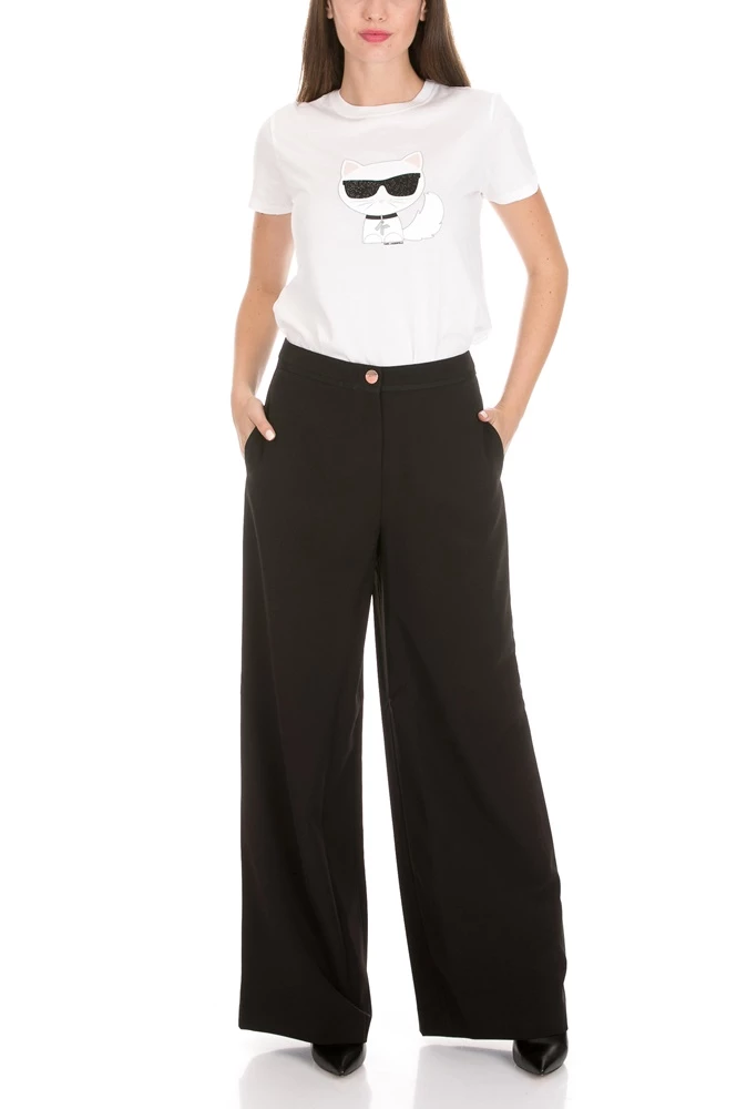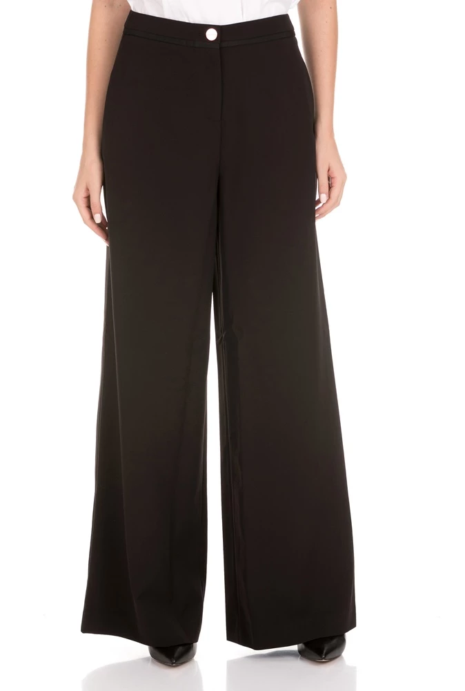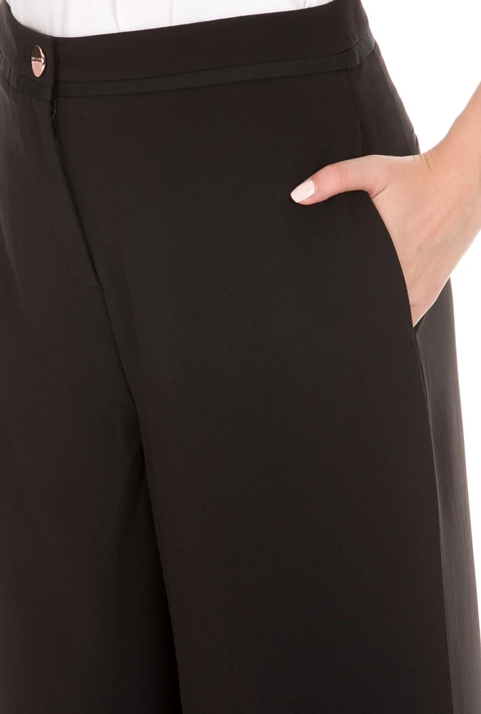 Γυναικεία παντελόνα TED BAKER ADAART σε μαύρο χρώμα. Εφαρμοστή πάνω με δύο πλαινές τσέπες και κλείσιμο με κουμπί και φερμουάρ. Φαρδιά στα πόδια. Απαραίτητο για να αναβαθμίσει την φετινή γκαρνταρόμπα σας, θα σας χαρίσει στιλ και δεν θα μπορέσετε να το αποχωριστείτε!