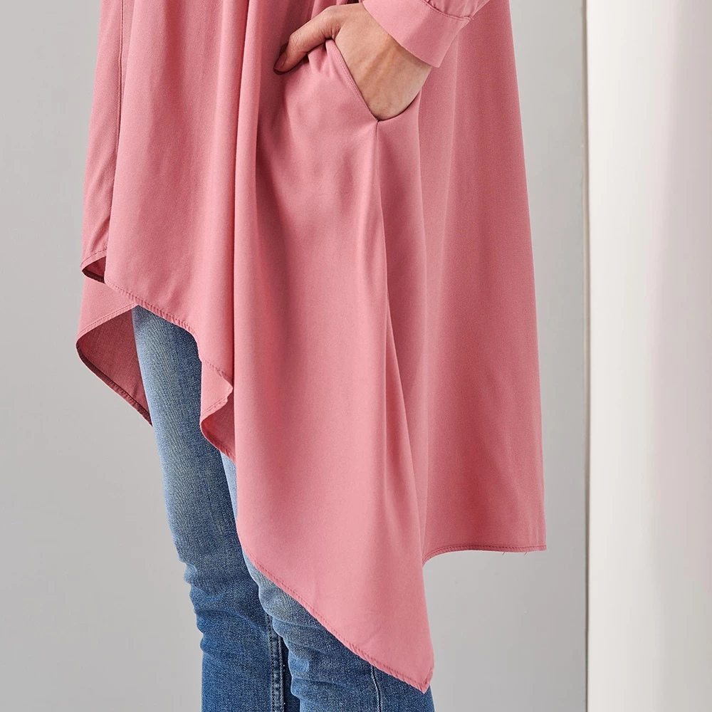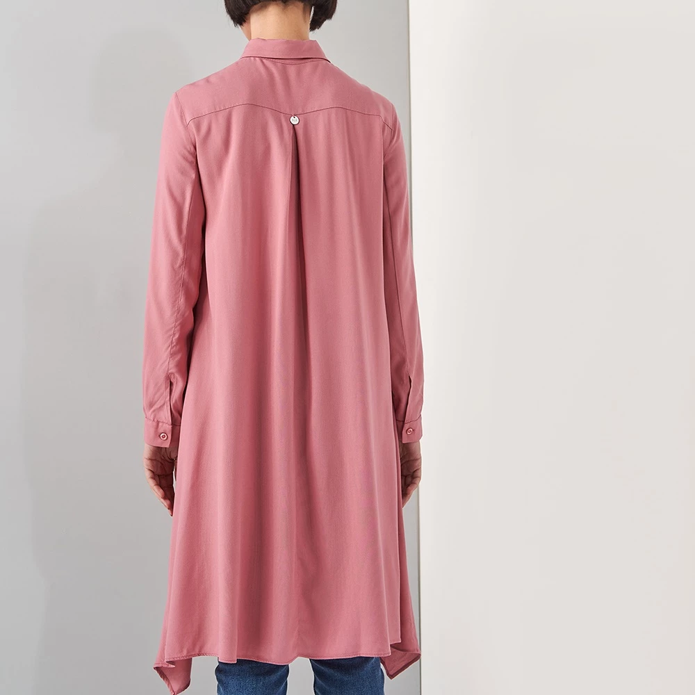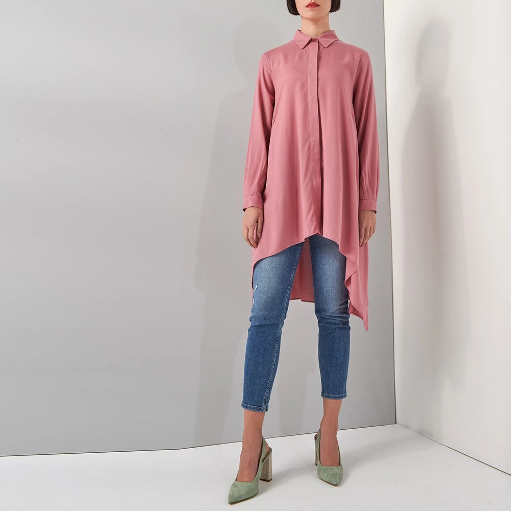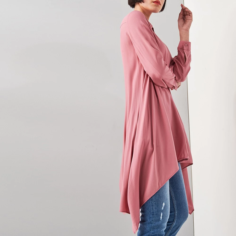 Γυναικεία πουκαμίσα ‘ALE σε ροζ απόχρωση. Σε ίσια και άνετη γραμμή, με μακριά μανίκια και κλασικό γιακά με μυτερές άκρες. Έχει ασύμμετρο τελείωμα, τσέπες στα πλάγια και κλείνει με κουμπιά μπροστά.