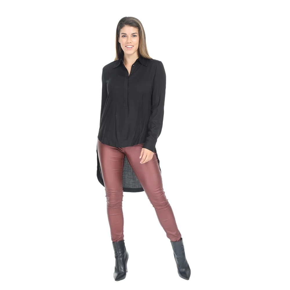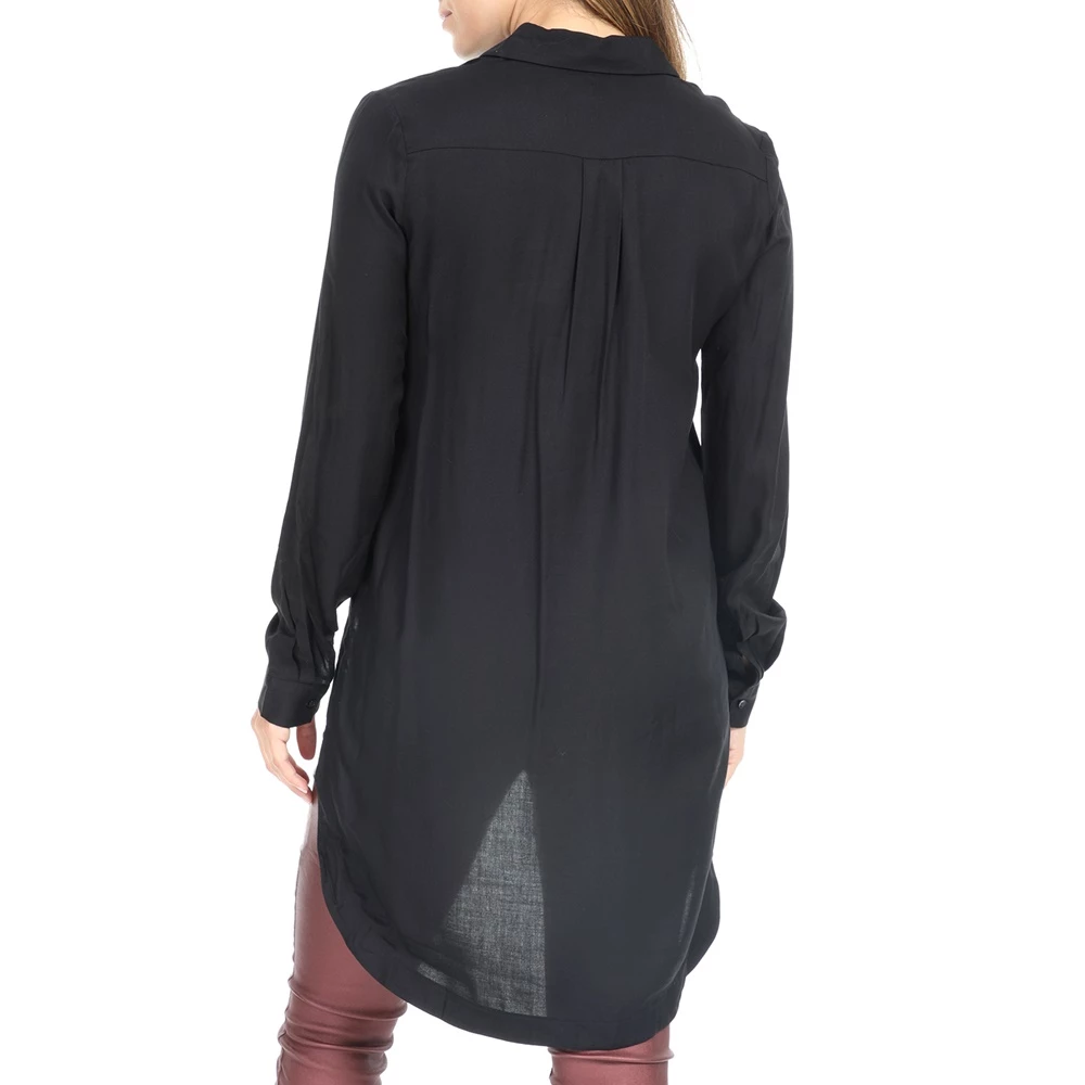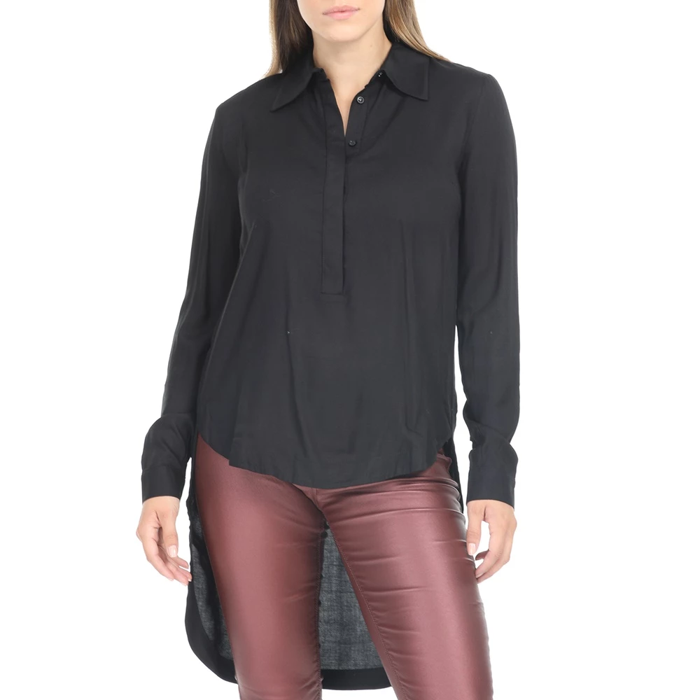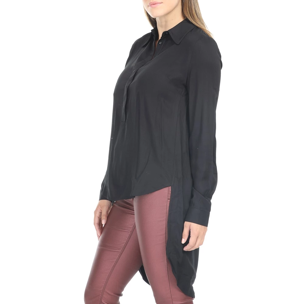 Γυναικεία ασύμμετρη πουκαμίσα IMPERIAL σε μαύρο χρώμα. Σε ίσια γραμμή, από βαμβακερή σύνθεση. Με μακριά μανίκια και κλασικό γιακά με μυτερές άκρες. Έχει μακρύτερο μήκος πίσω και κλείνει με κουμπιά μπροστά.