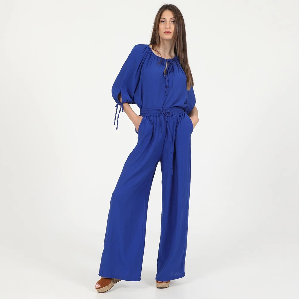 Γυναικεία τουνίκ ATTRATTIVO σε μπλε απόχρωση. Σε άνετη γραμμή, με μανίκια 7/8 και στρογγυλή λαιμόκοψη που δένει με κορδονάκι. Ελαφρώς μακρύτερο μήκος πίσω.