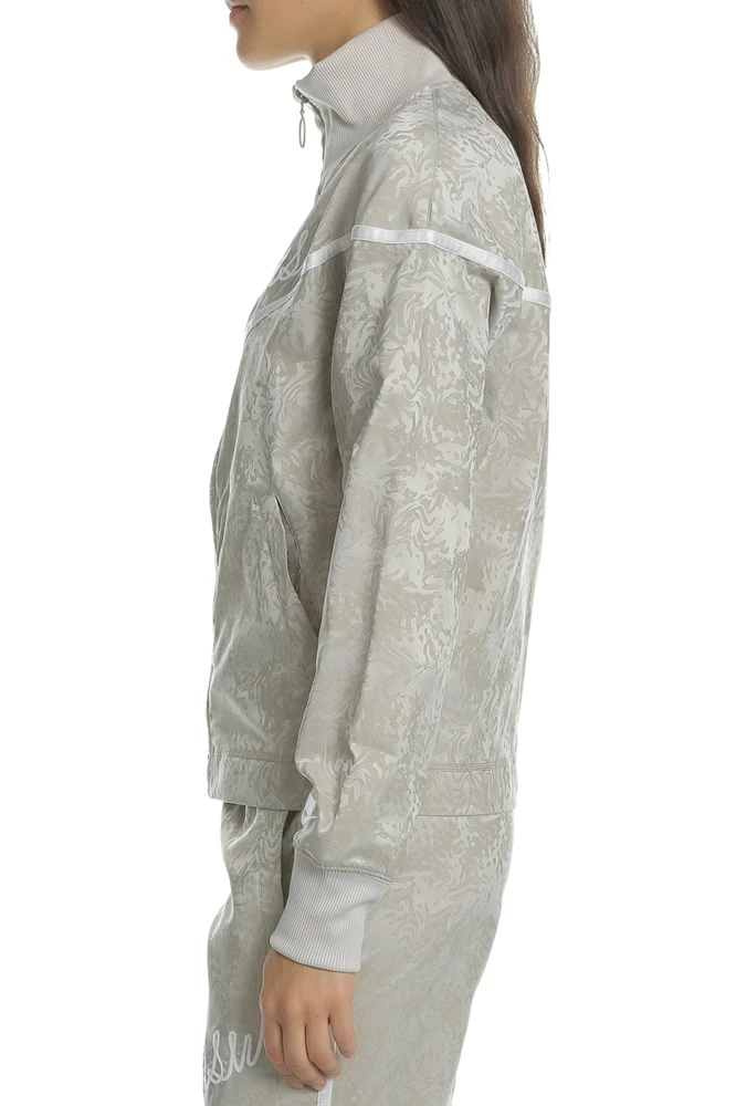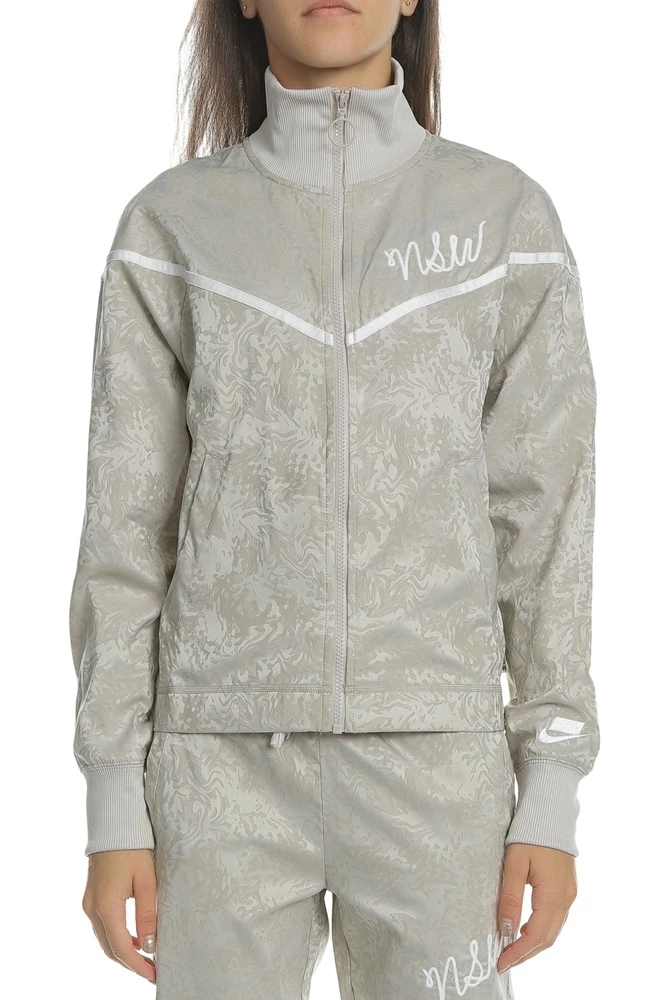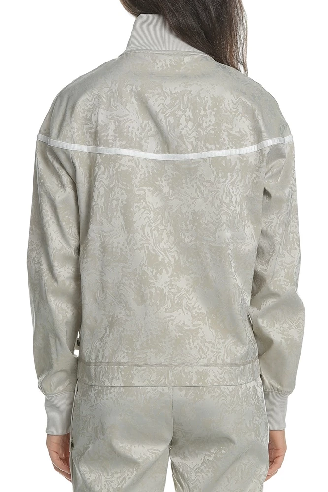Γυναικεία ζακέτα σε μπεζ απόχρωση με μοτίβο. Διαθέτει ψηλό λαιμό για έξτρα κάλυψη και πλαϊνές τσέπες. Η φαρδιά της γραμμή χαρίζει ελευθερία κινήσεων.
