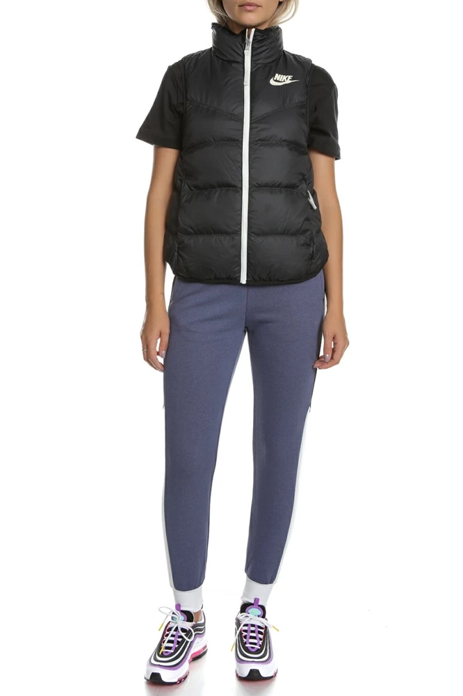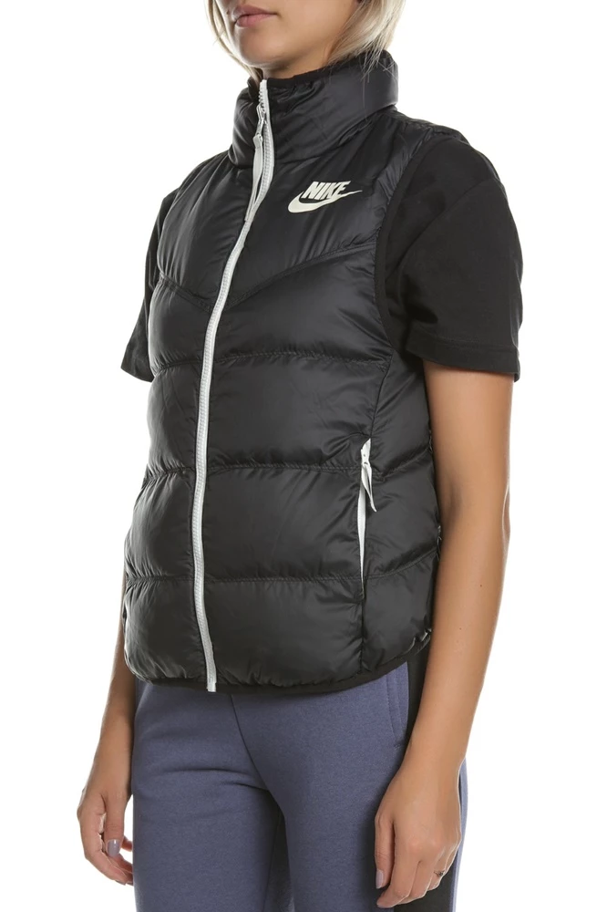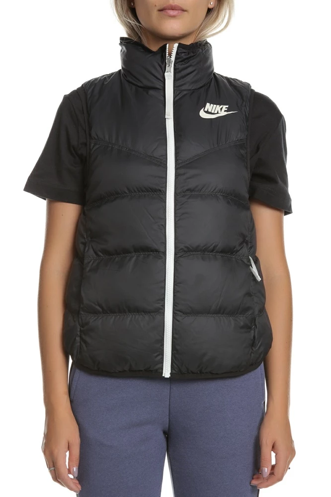 Γυναικείο αμάνικο μπουφάν NIKE WINDRUNNER σε μαύρο χρώμα. Καπιτονέ με όρθιο γιακά. Λευκό λογότυπο του brand στο στήθος. Κλείσιμο και δύο πλαινές τσέπες με λευκό φερμουάρ. Ελαφρώς μακρύτερο μπροστά. Απαραίτητο για τις ενδιάμεσες εποχές για ένα κομψό outft!