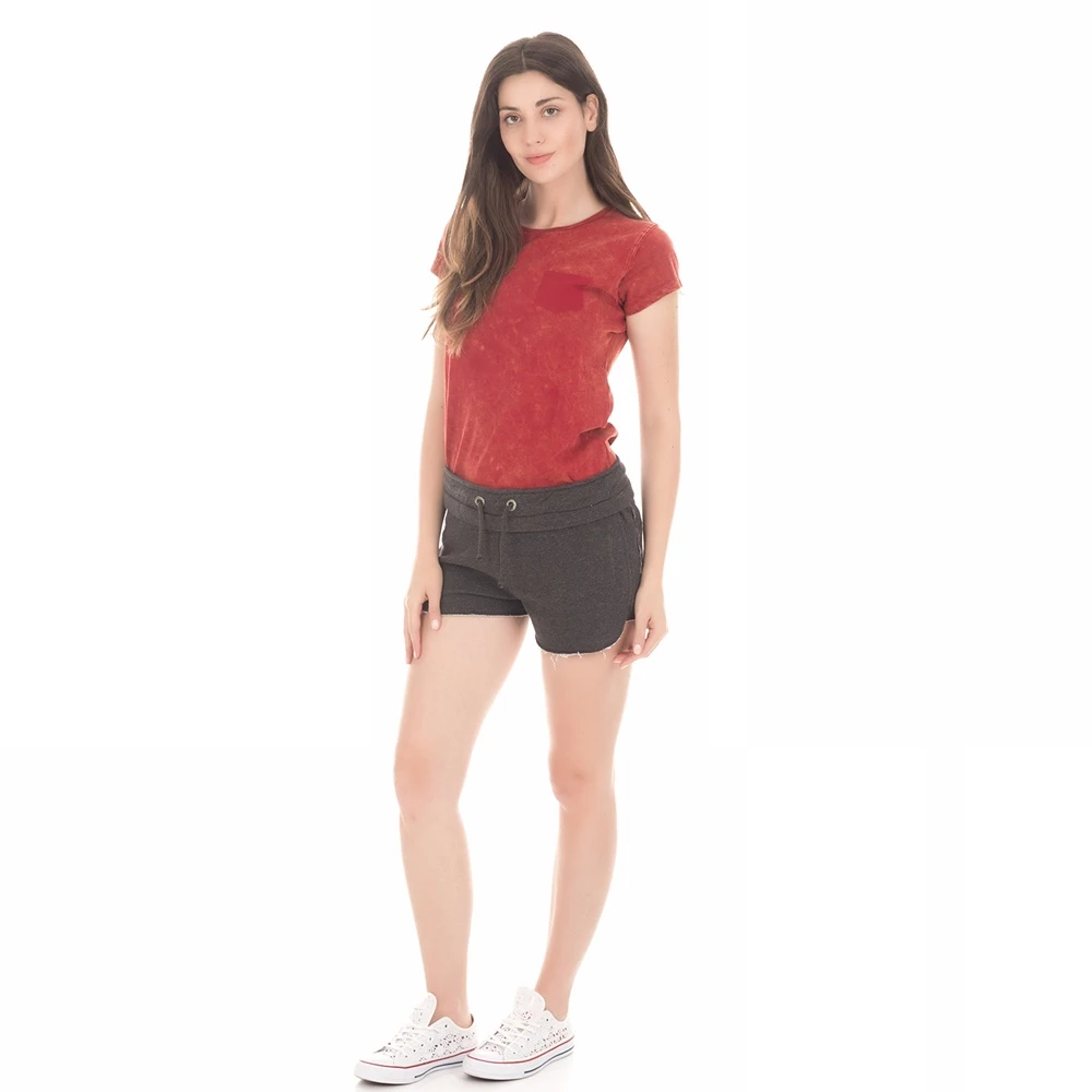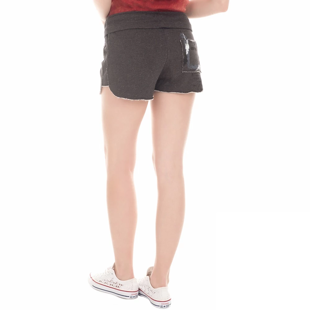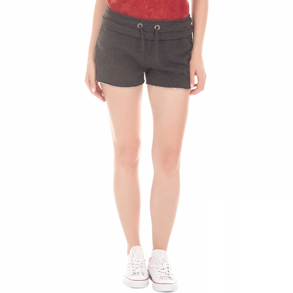 Γυναικείο αθλητικό σορτς σε ανθρακί απόχρωση με κανονική εφαρμογή και κορδόνι στη μέση για έξτρα σταθερότητα.