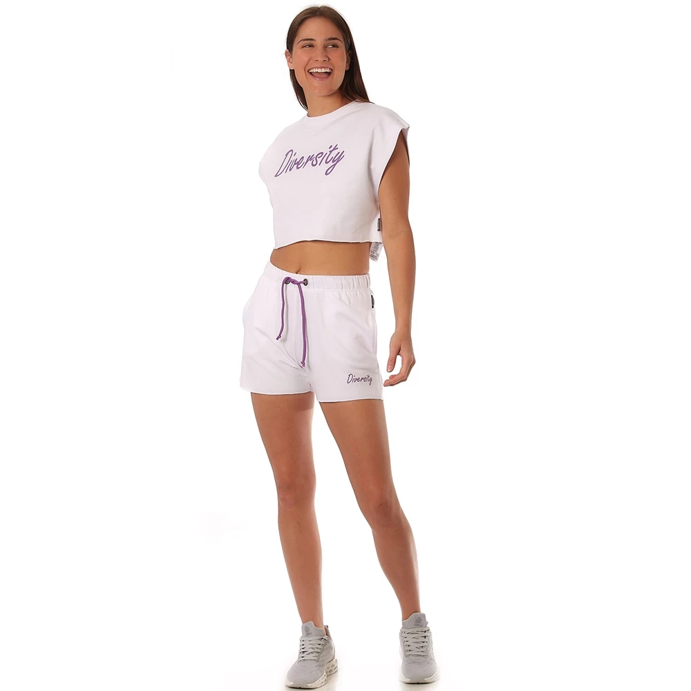 Γυναικείο αθλητικό σορτσάκι Admiral Derze σε λευκό χρώμα. Διαθέτει ελαστική μέση, εξωτερικό κορδόνι, τσέπες και διακριτική στάμπα στον μηρό.
