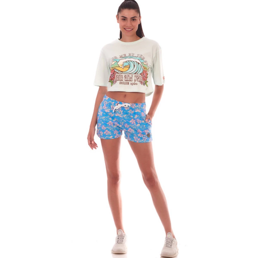 Γυναικείο αθλητικό σορτσάκι Maui Vanil σε μπλε απόχρωση. Διαθέτει ελαστική μέση, εξωτερικό κορδόνι, τσέπες και πανέμορφο floral χρωματισμό.