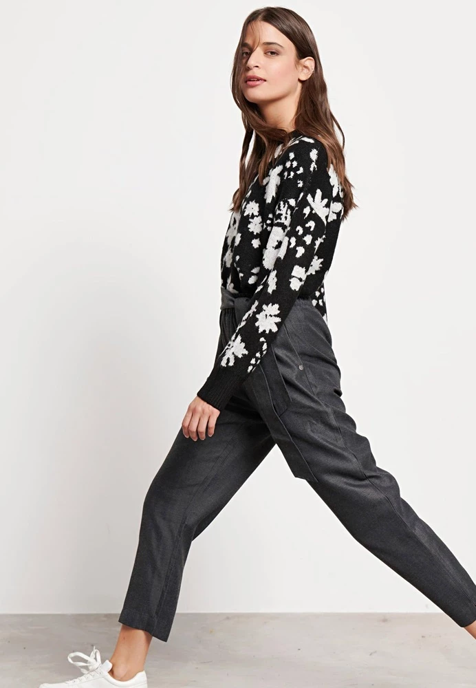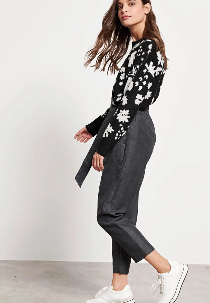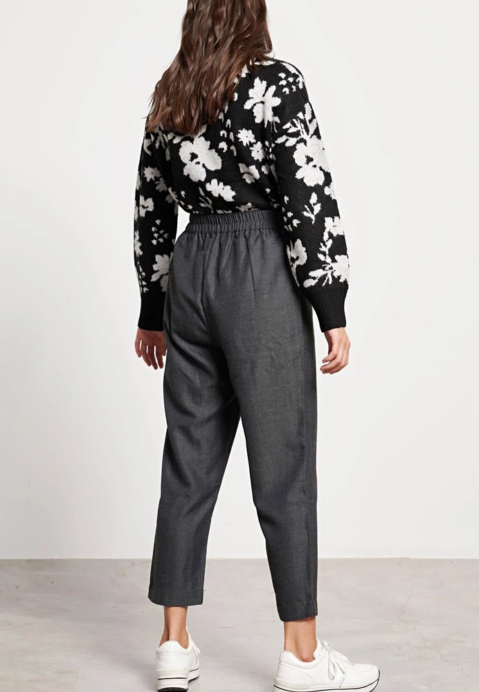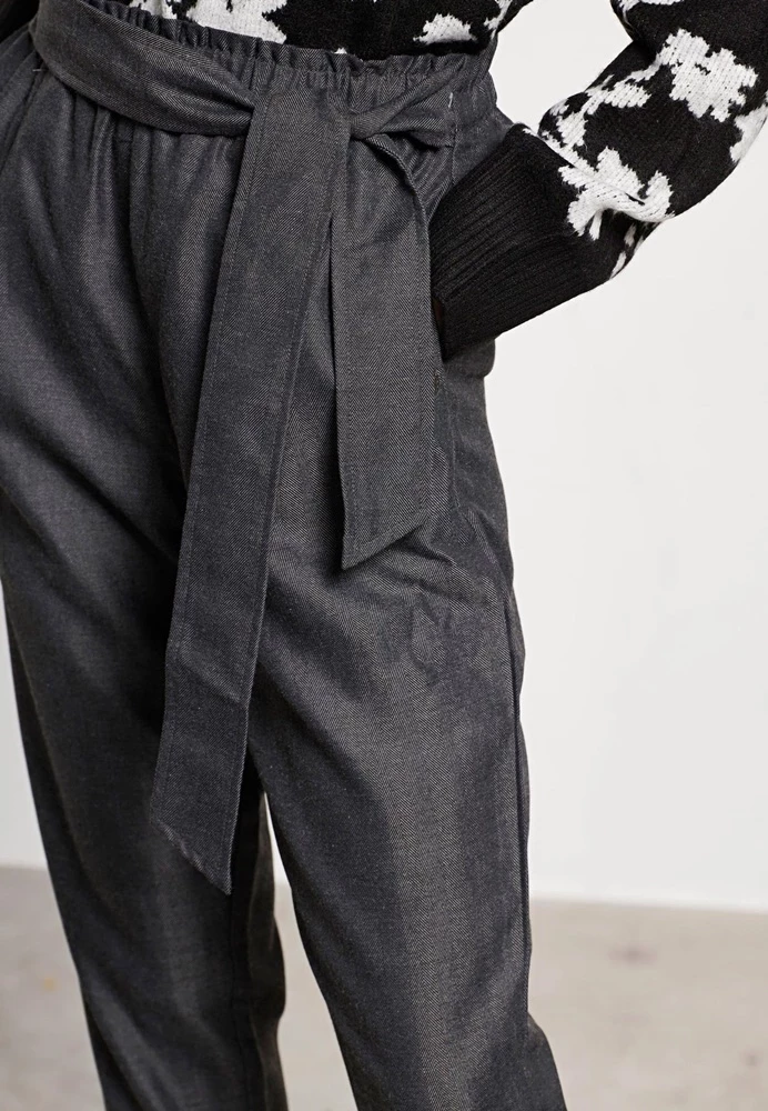 Γυναικείο casual παντελόνι FUNKY BUDDHA σε γκρι απόχρωση. Είναι ψηλόμεσο, σε ίσια γραμμή, με μήκος πάνω από τον αστράγαλο. Διαθέτει δύο τσέπες στα πλαϊνά, μέση με λάστιχο και μπροστινό δέσιμο με κόμπο.