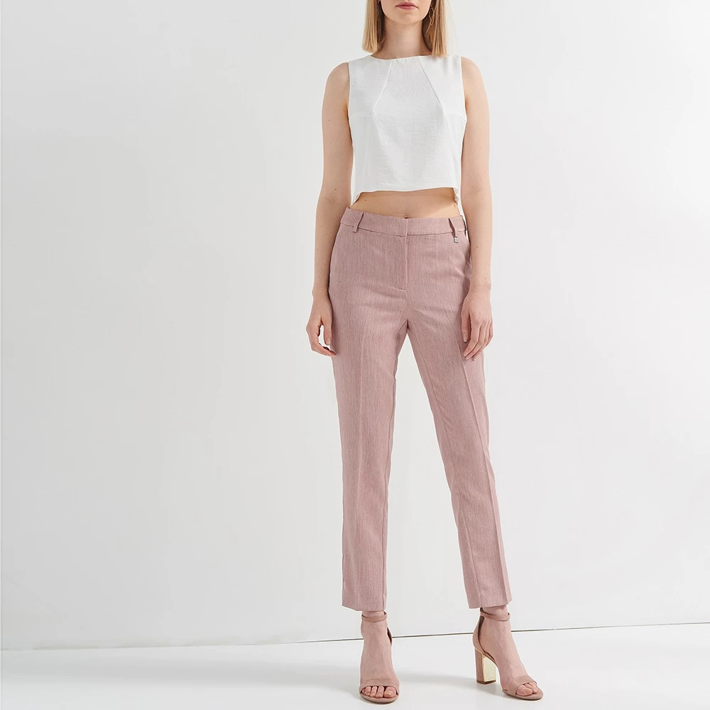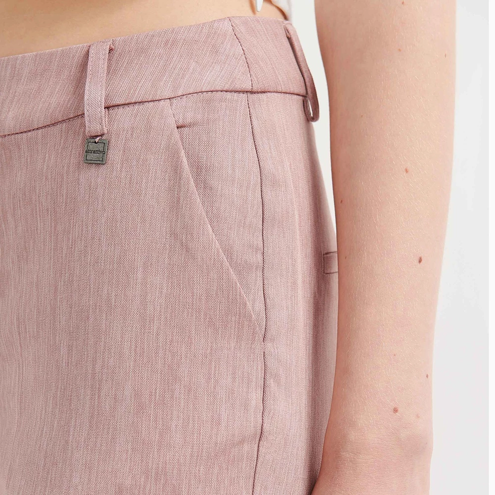 Γυναικείο cigarette παντελόνι ATTRATTIVO σε ροζ απόχρωση. Είναι σε ίσια γραμμή, με δύο τσέπες στα πλάγια και δύο τσέπες πίσω. Κλείνει με κουμπί και φερμουάρ μπροστά.