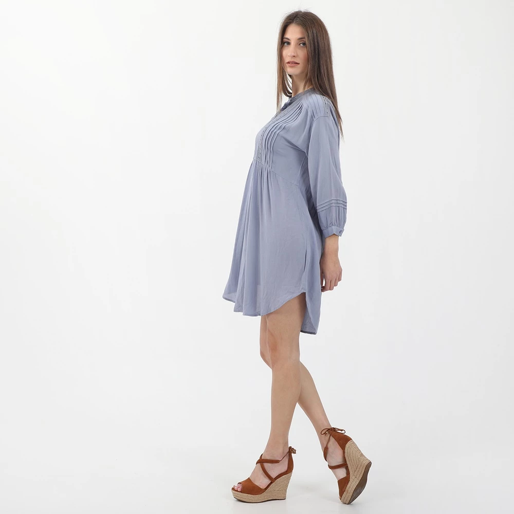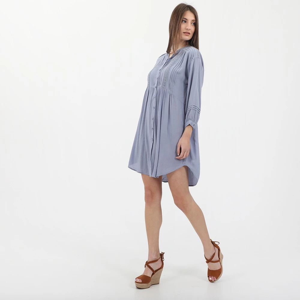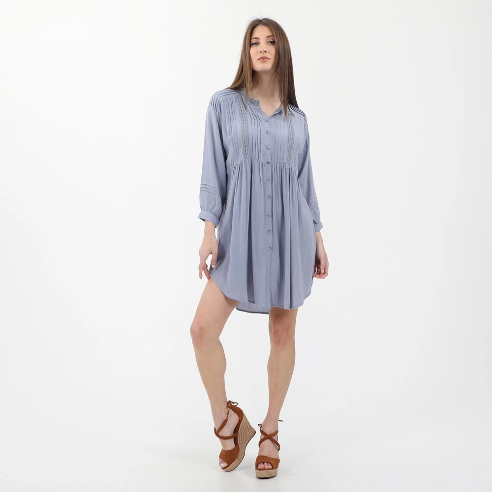 Γυναικείο φόρεμα πουκαμίσα ATTRATTIVO σε γαλάζια απόχρωση. Σε άνετη γραμμή, από ανάλαφρη ύφανση. Έχει μακριά μανίκια, mao γιακά και κλείνει με κουμπιά μπροστά. Συνδύασέ την με το jean σορτς σου, τόνισε την μέση σου με μία ζώνη και εντυπωσίασε!