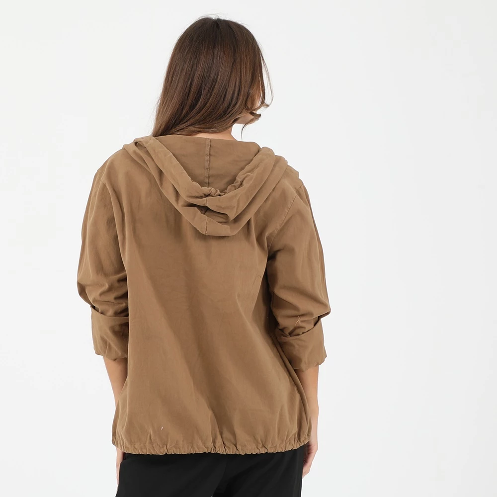 Γυναικείο jacket ATTRATTIVO σε καφέ απόχρωση. Σε ίσια γραμμή, με μακριά μανίκια και κουκούλα. Διαθέτει δύο τσέπες στα πλαϊνά και κλείνει με φερμουάρ μπροστά. Ιδανικό για την αλλαγή των εποχών.