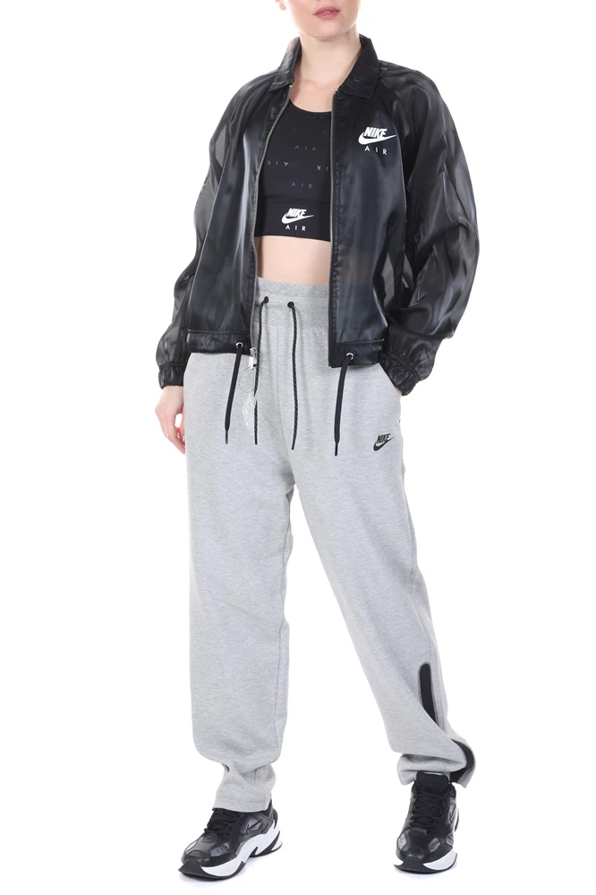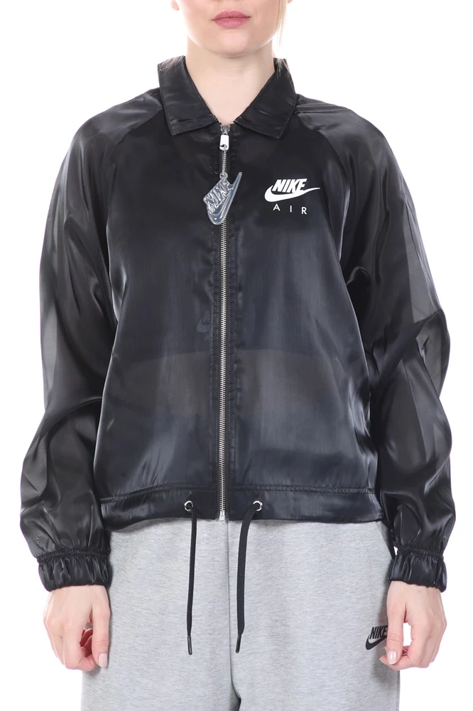 Γυναικείο jacket NIKE σε μαύρο χρώμα. Από ημιδιάφανο ύφασμα, με γυαλιστερή όψη. Έχει μακριά μανίκια, στάμπα με το λογότυπο στο στήθος και κορδόνι στη βάση. Θα γίνει η αγαπημένη σου επιλογή για ένα εντυπωσιακό look!