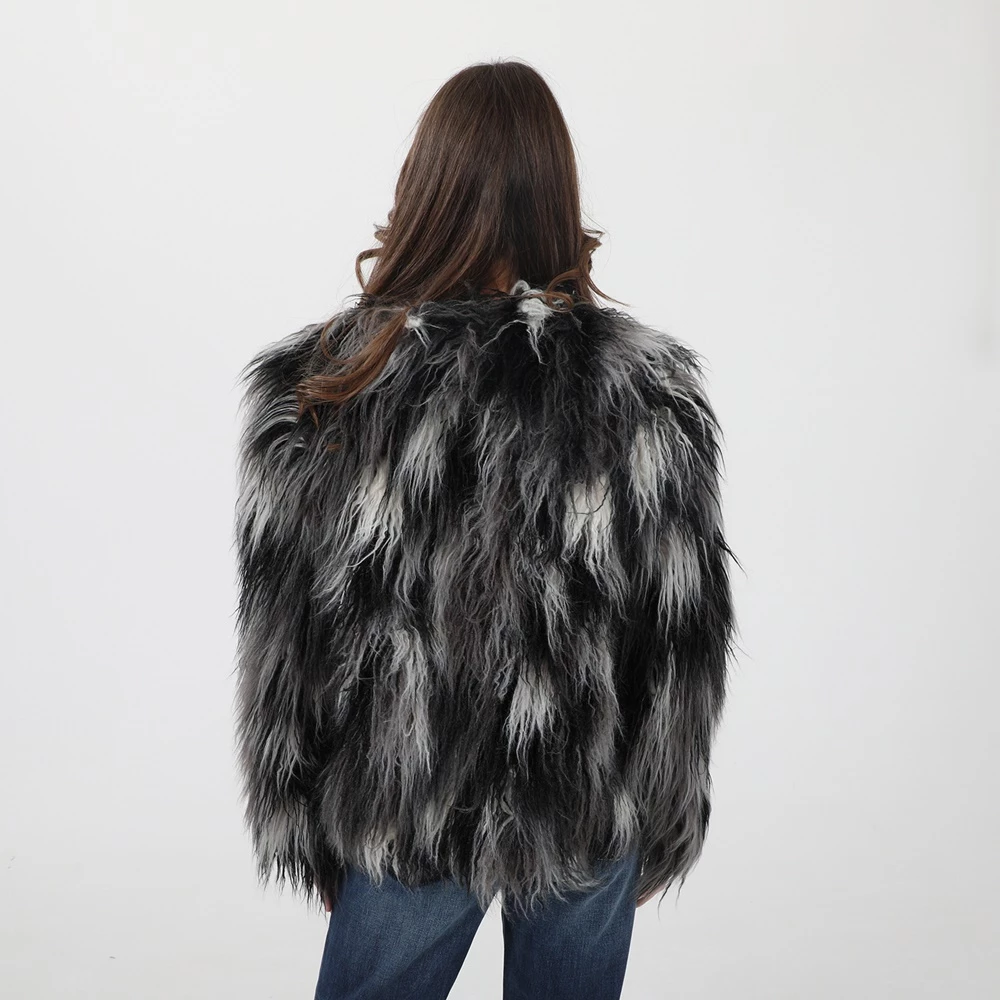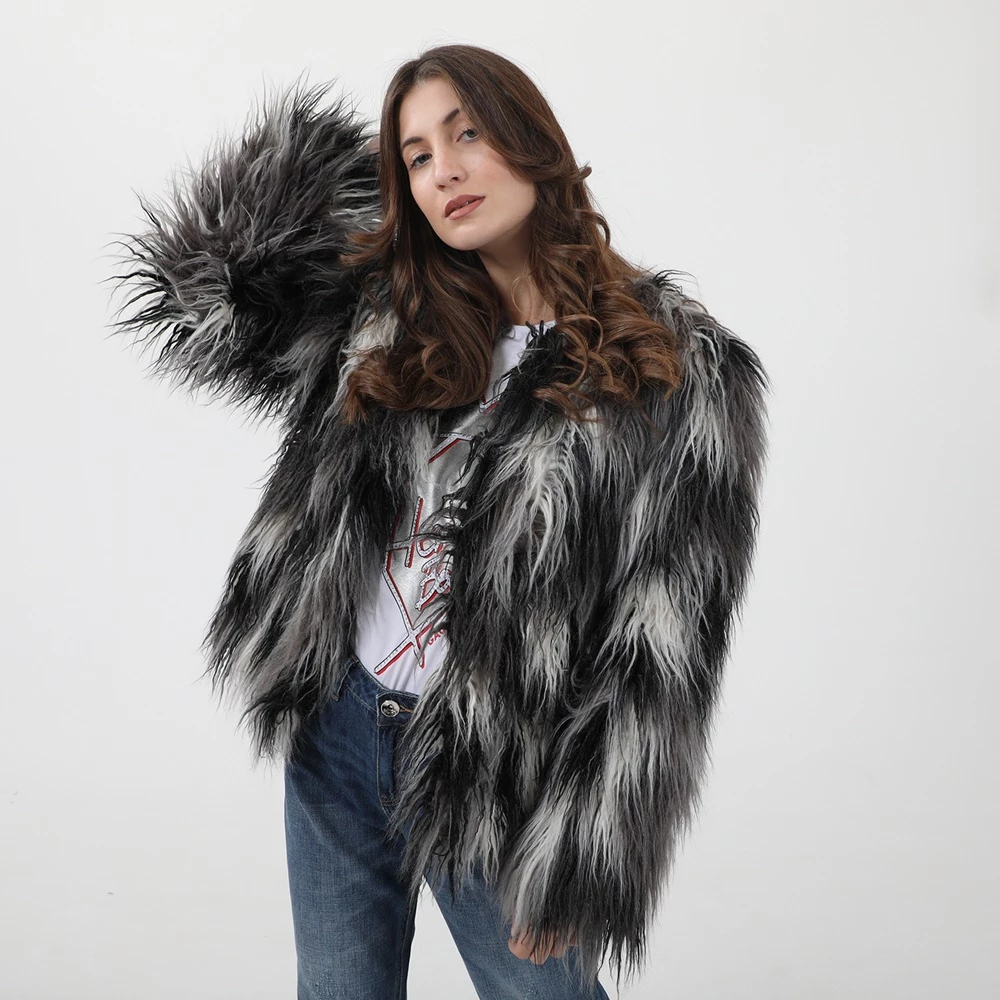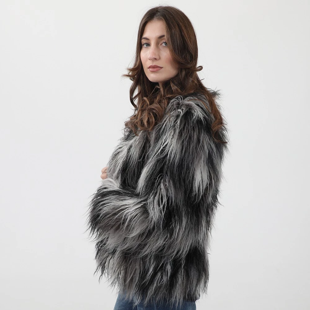 Γυναικείο jacket STAFF JEANS σε γκρι απόχρωση. Από συνθετική γούνα, με μακριά μανίκια και στρογγυλή λαιμόκοψη.