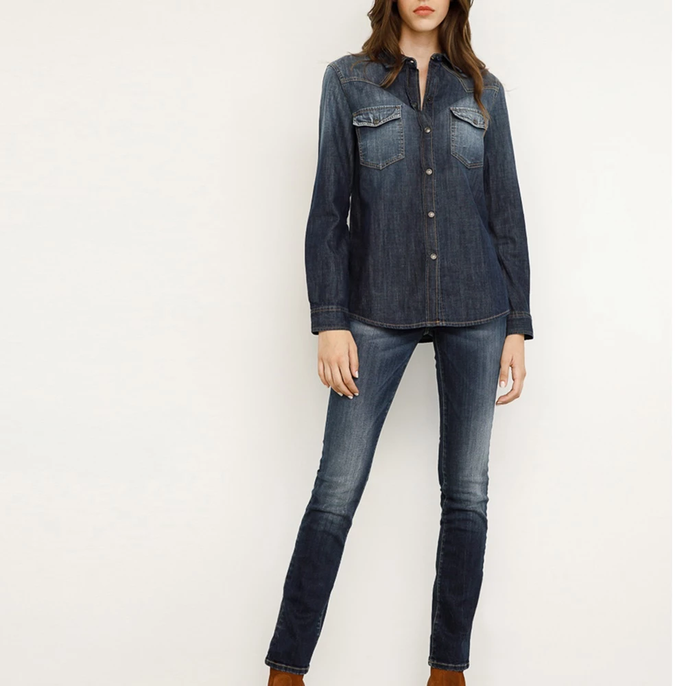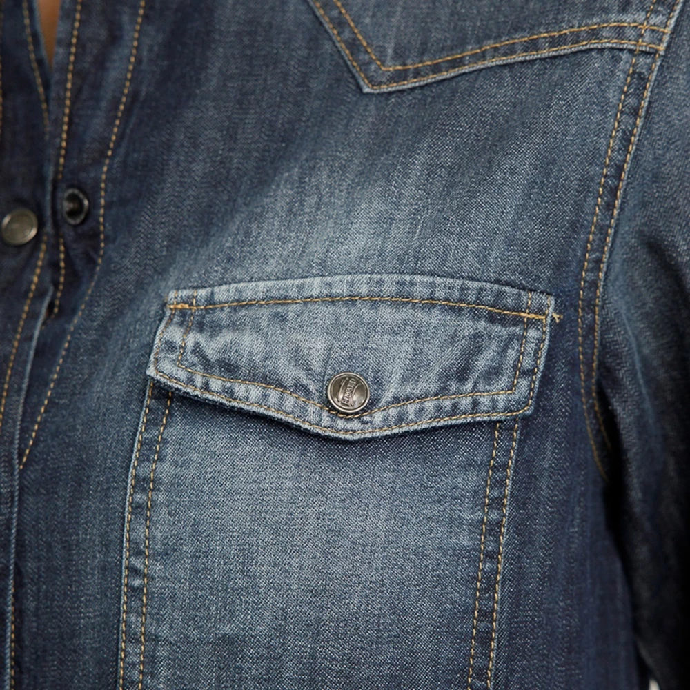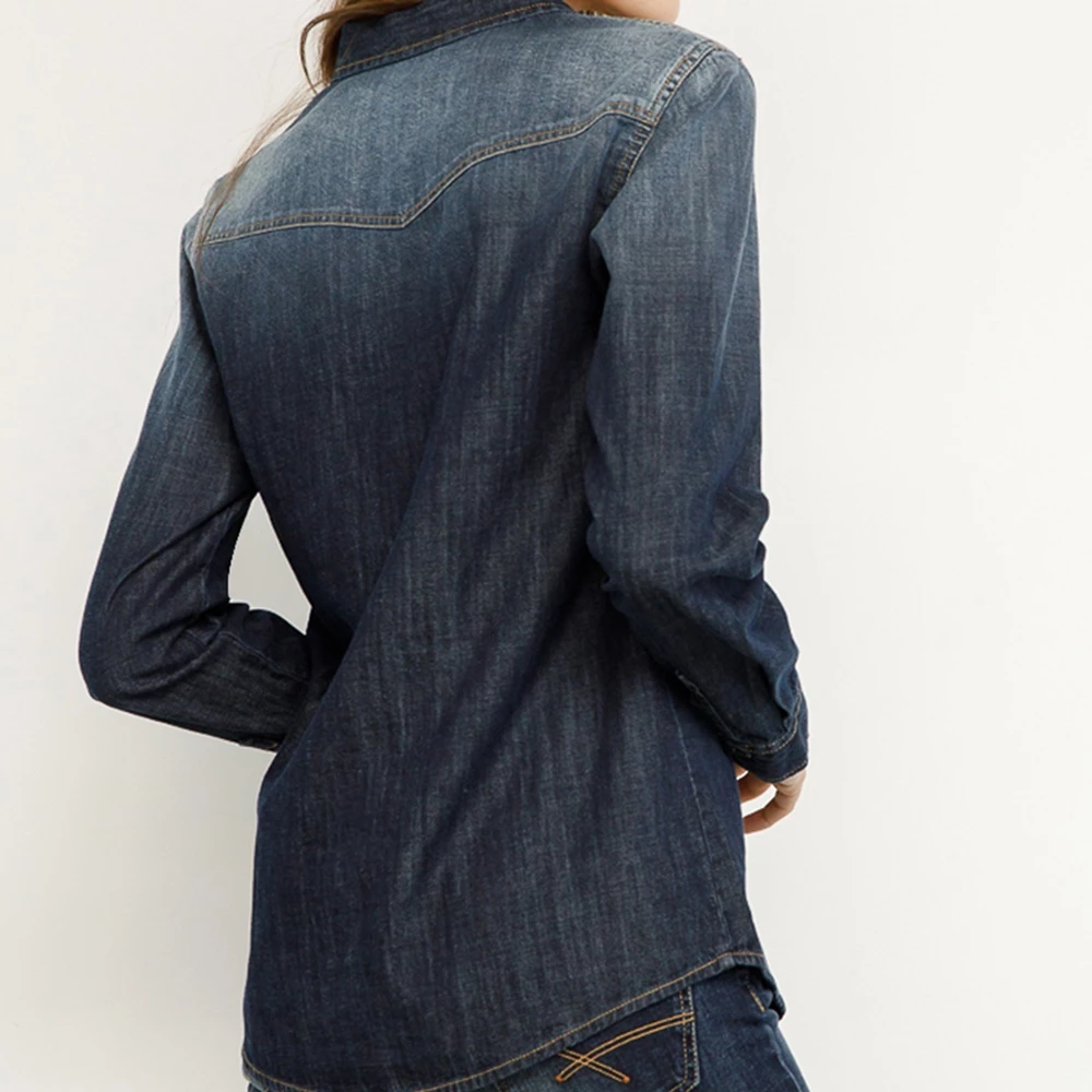 Γυναικείο jean πουκάμισο EDWARD JEANS σε μπλε απόχρωση. Από βαμβακερό denim, με μακριά μανίκια και γιακά με μυτερές άκρες. Διαθέτει δύο τσέπες με καπάκι στο στήθος και κλείνει με κουμπιά μπροστά. Για κλασικές casual εμφανίσεις.