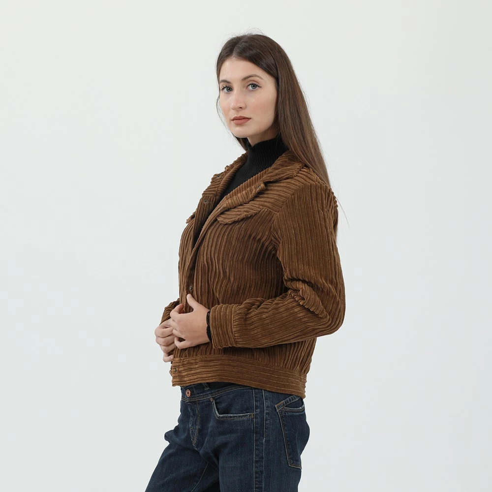 Γυναικείο jacket STAFF JEANS σε καφέ απόχρωση. Από βαμβακερή κοτλέ ύφανση, με μακριά μανίκια και κλασικό γιακά με μυτερές άκρες και πέτο. Διαθέτει τσέπες με καπάκι στο στήθος και κλείνει με κουμπιά μπροστά.