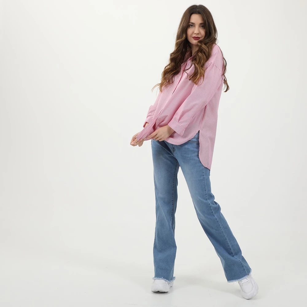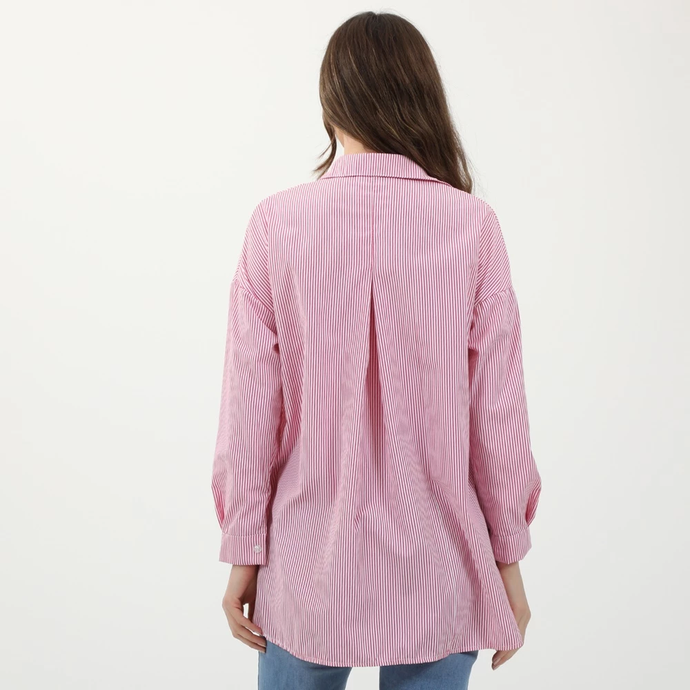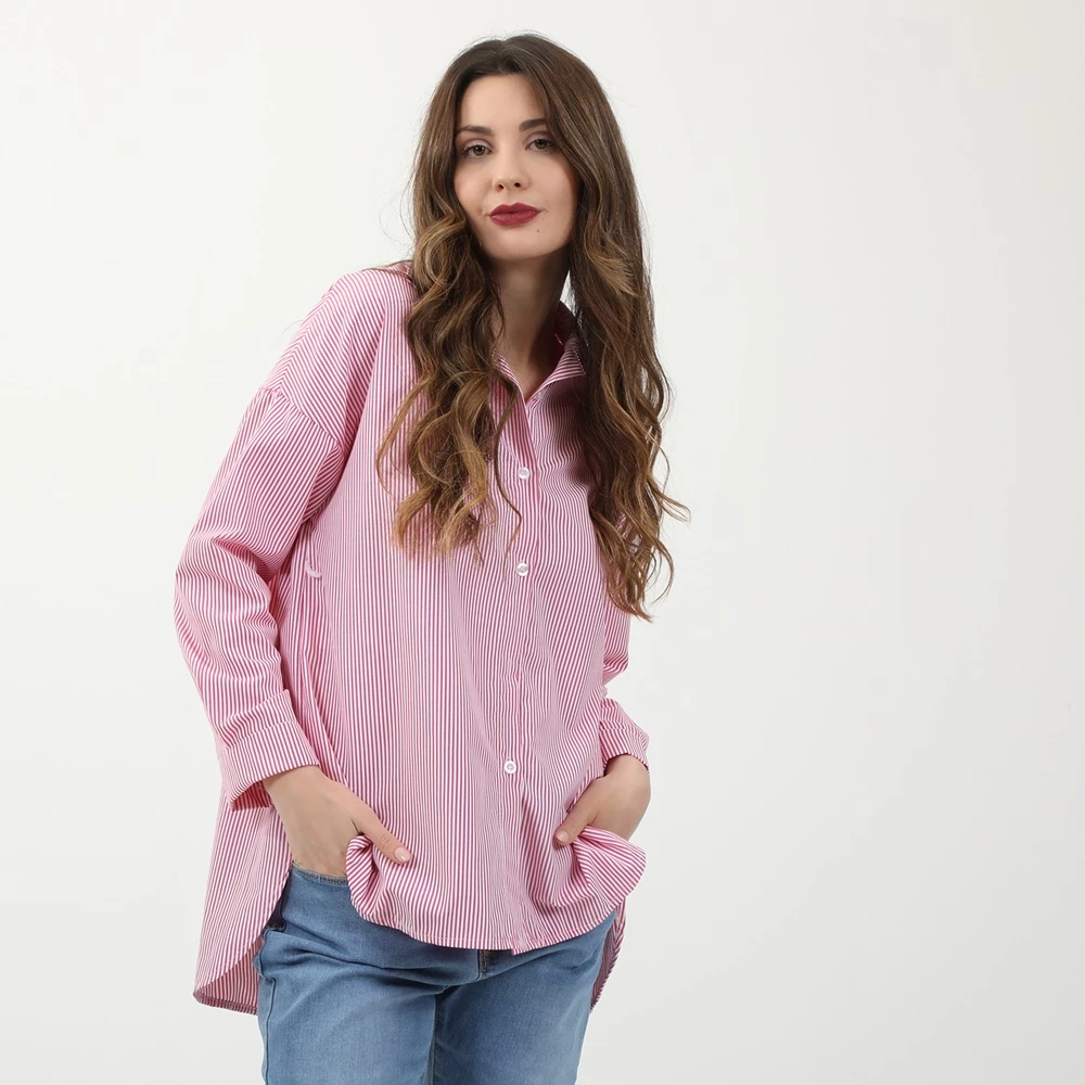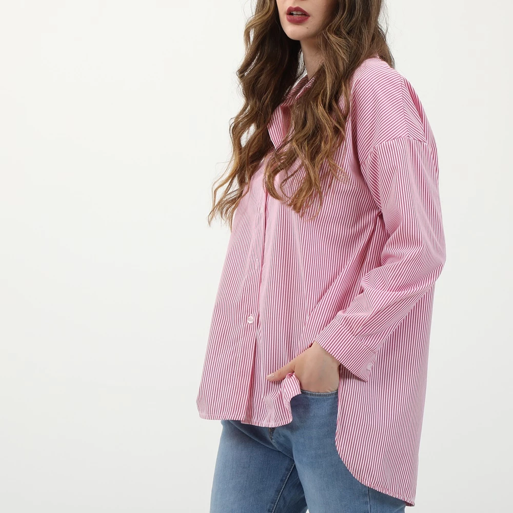 Γυναικείο μακρύ πουκάμισο ATTRATTIVO σε ροζ και λευκό χρώμα, με ριγέ μοτίβο. Σε άνετη γραμμή, από βαμβακερή σύνθεση. Έχει μακριά μανίκια και κλασικό γιακά με μυτερές άκρες. Κλείνει με κουμπιά μπροστά. Συνδυάστε το με τα κατάλληλα αξεσουάρ και φορέστε το από το πρωί μέχρι το βράδυ!