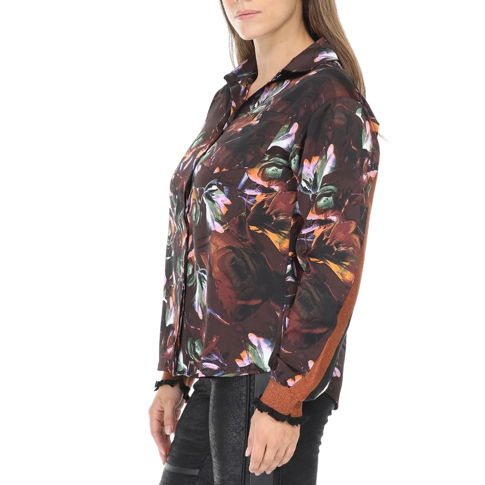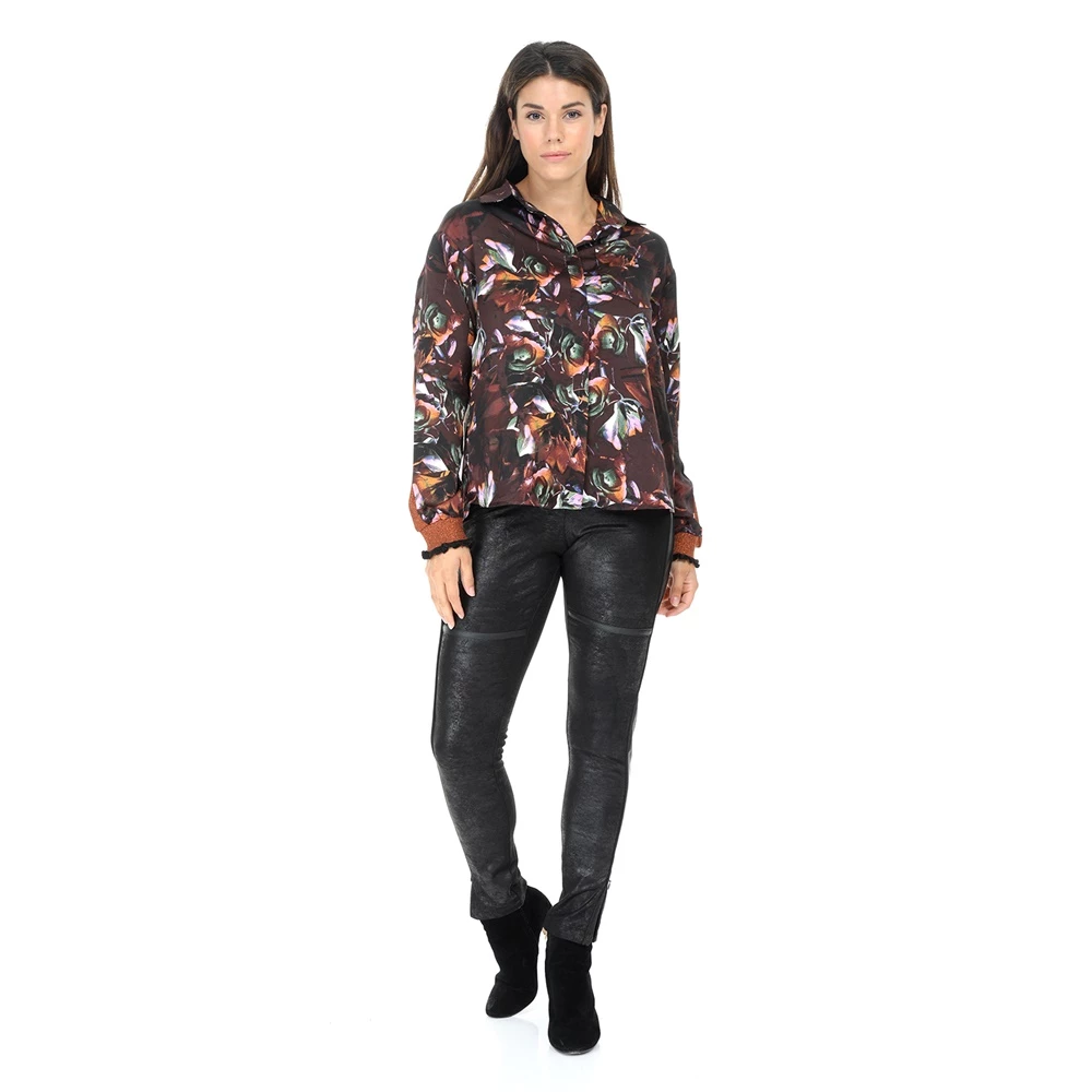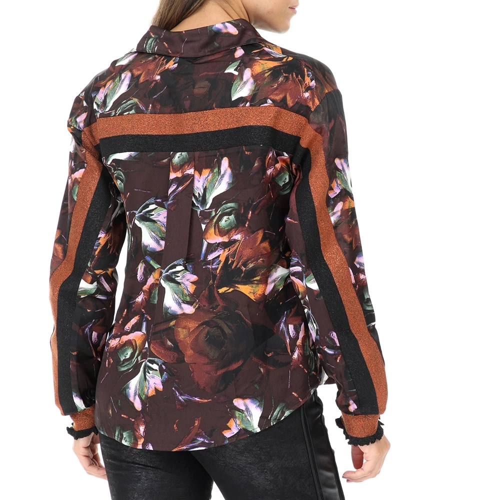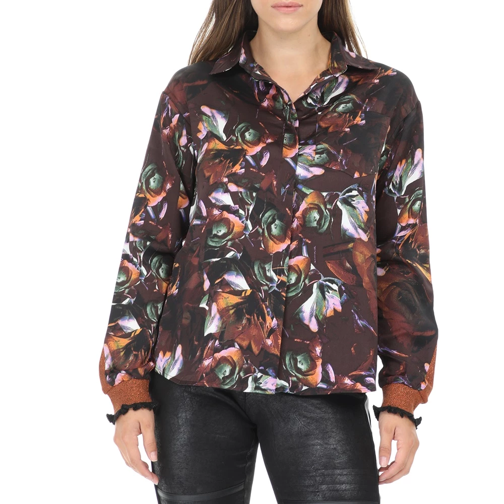 Γυναικείο μακρυμάνικο πουκάμισο NU σε καφέ χρώμα με φλοράλ σχέδιο σε όλη την επιφάνεια. Κλείνει με κουμπιά.