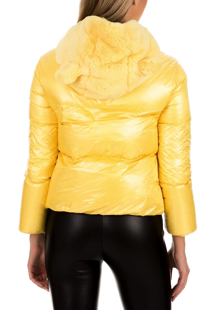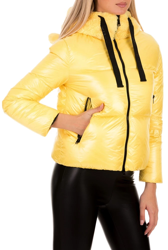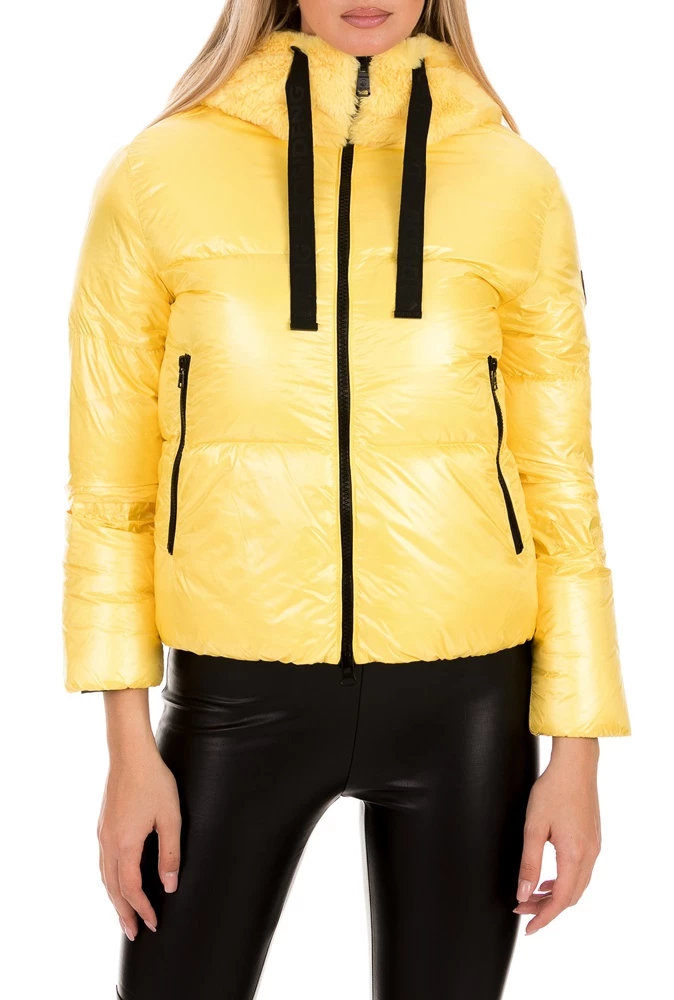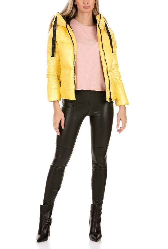 Γυναικείο padded μπουφάν BOSIDENG σε κίτρινη απόχρωση. Σε ίσια γραμμή με γυαλιστερή όψη. Κλείσιμο με φερμουάρ που καταλήγει σε όρθιο γιακά. Διαθέτει κουκούλα από μαλακό φλις, με αυτάκια και κορδόνι σε αντίθεση. Δύο πλαινές τσέπες με φερμουάρ και διακριτικό λογότυπο του brand στο ένα μανίκι. Ζεστό και ελαφρύ, για casual εμφανίσεις με παιχνιδιάρικη διάθεση.
