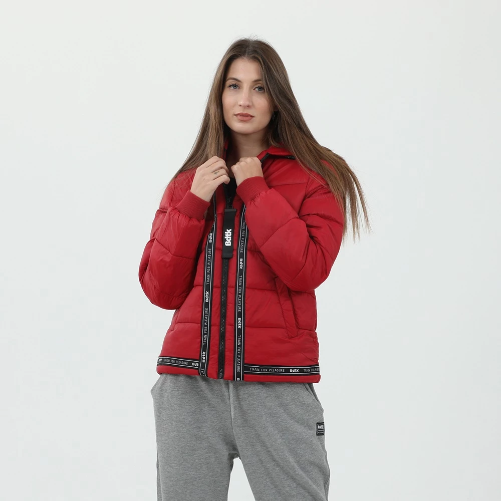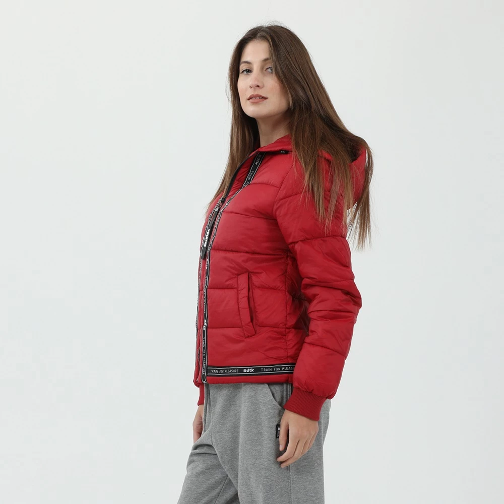 Γυναικείο padded μπουφάν BODYTALK σε μπορντό απόχρωση. Ζεστό και ελαφρύ, με μακριά μανίκια και στρογγυλή λαιμόκοψη. Διαθέτει κουκούλα με ρυθμιζόμενο κορδόνι, δύο τσέπες στα πλάγια και λάστιχο rib στις μανσέτες για μεγαλύτερη προστασία από το κρύο. Κλείνει με φερμουάρ μπροστά.