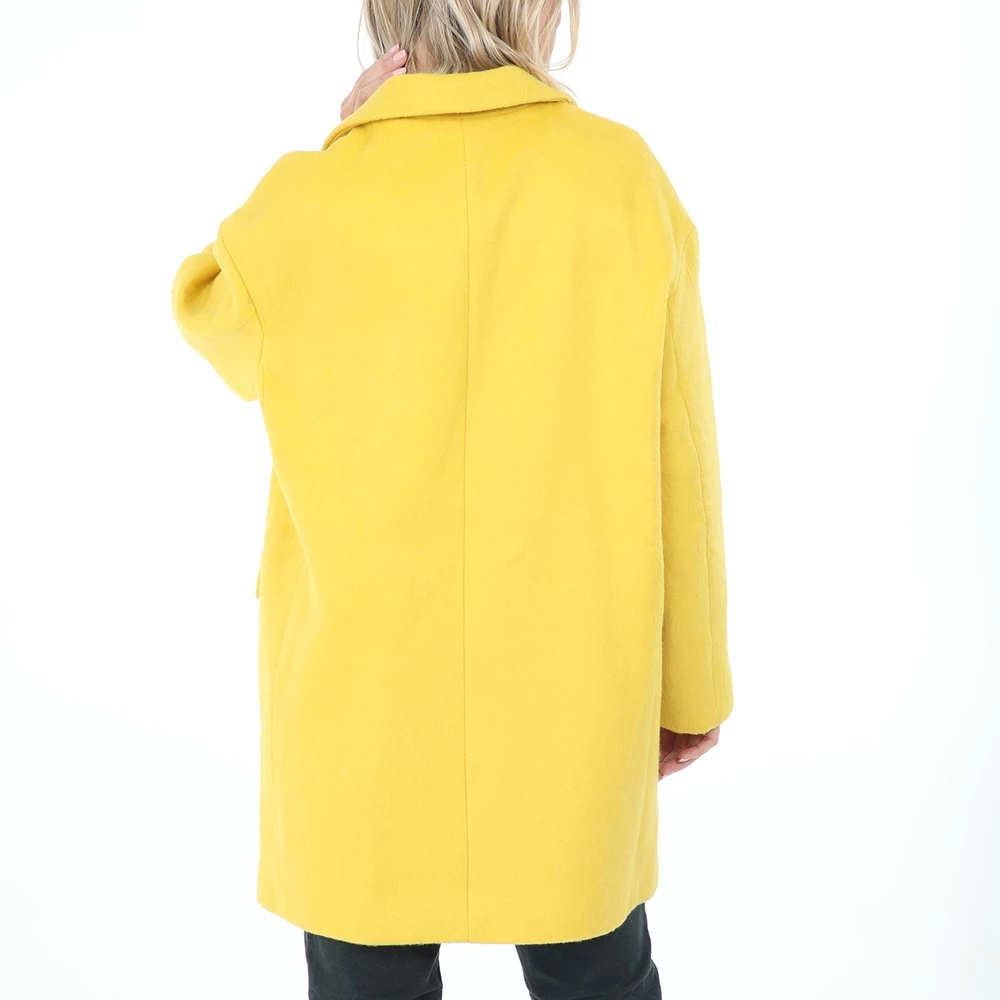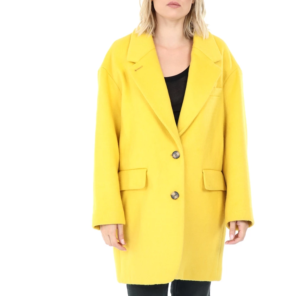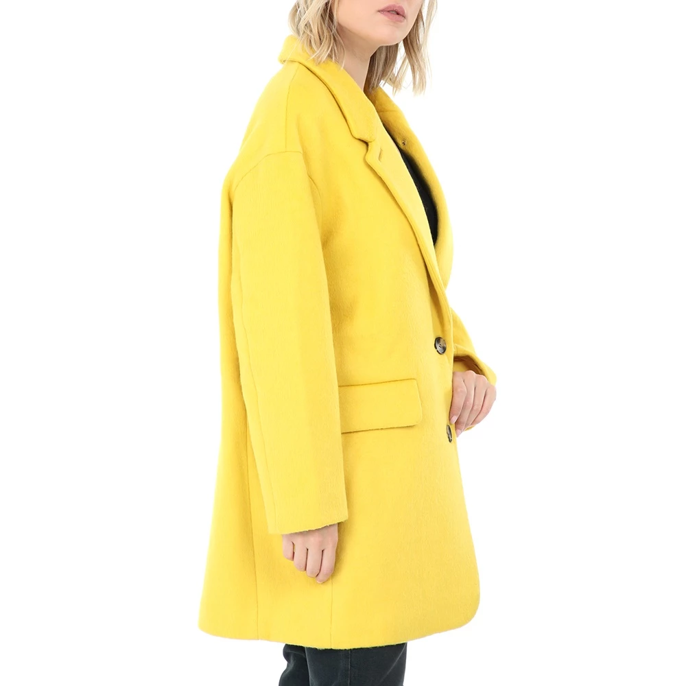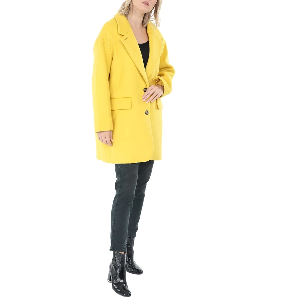 Γυναικείο παλτό-σακάκι AMERICAN VINTAGE σε κίτρινη απόχρωση. Είναι σε ίσια γραμμή, από ζεστή σύνθεση και με απαλή υφή. Έχει μακριά μανίκια και κλασικό γιακά με πέτο. Δύο τσέπες στα πλάγια. Κλείνει με δύο κουμπιά μπροστά. Κλασικό και διαχρονικό, θα ολοκληρώσει κάθε σας εμφάνιση.