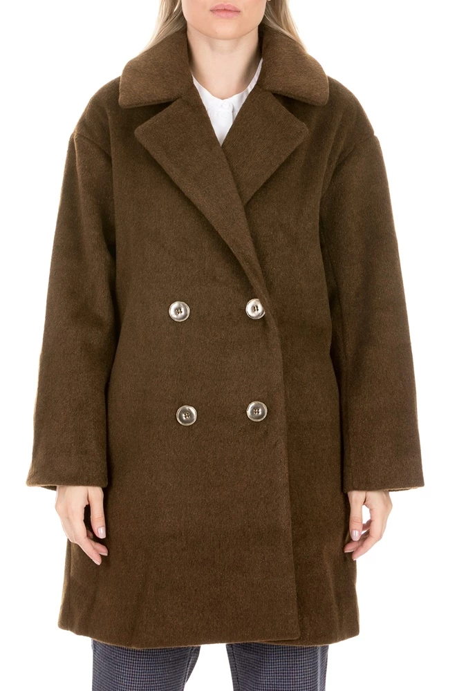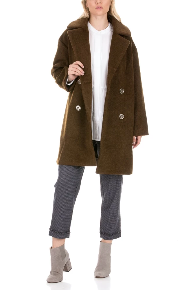 Γυναικείο παλτό MOLLY BRACKEN σε χακί απόχρωση. Σε ίσια γραμμή, με άνετη εφαρμογή. Έχει μακριά μανίκια και μεγάλο γιακά με πέτο. Διαθέτει δύο τσέπες στα πλάγια και κλείνει σταυρωτά με κουμπιά μπροστά.