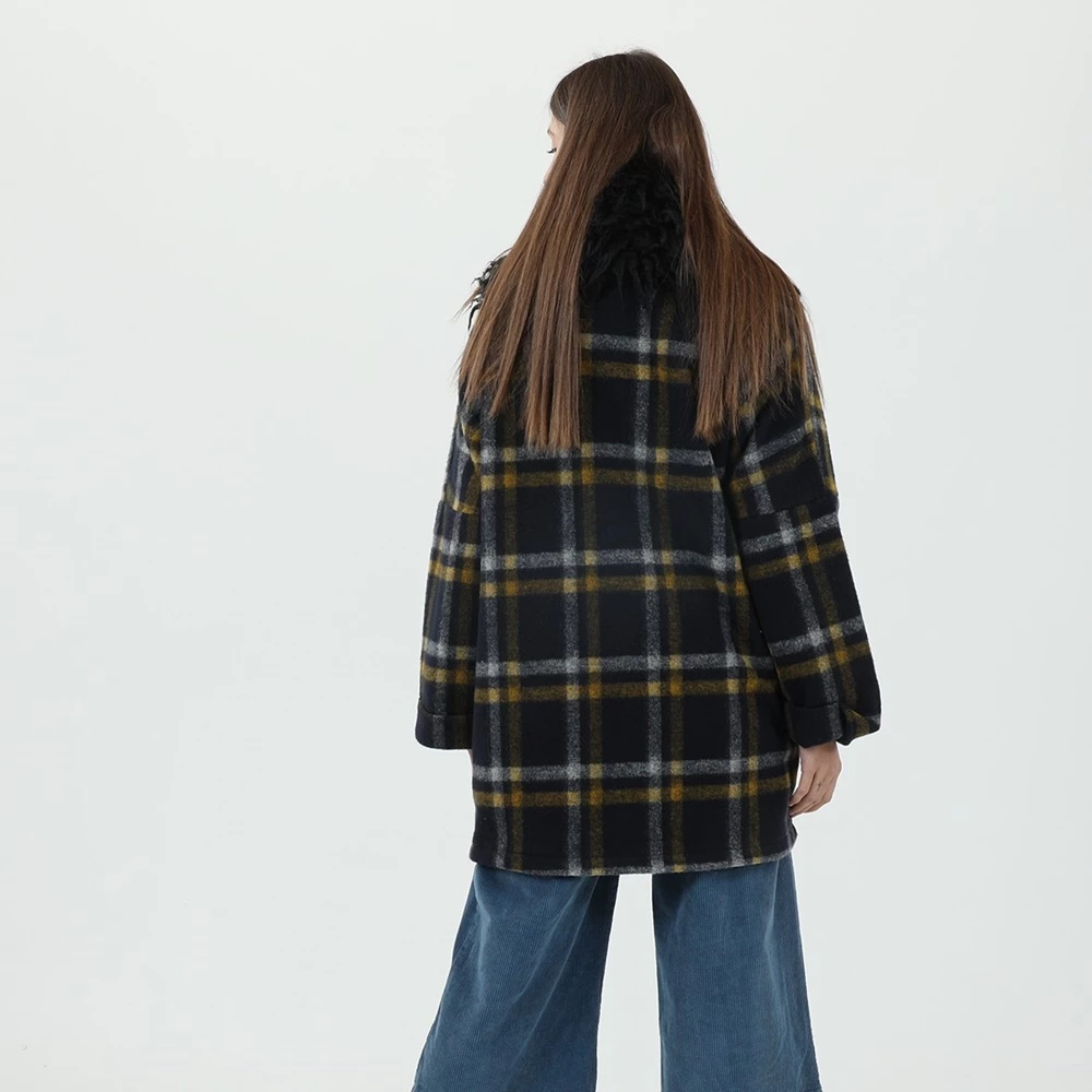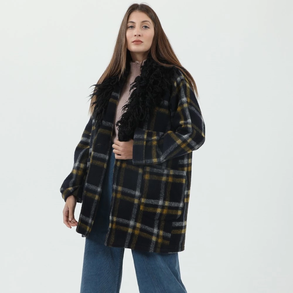 Γυναικείο παλτό STAFF JEANS σε μπλε και κίτρινη απόχρωση, με καρό μοτίβο. Από απαλή βαμβακερή σύνθεση, με συνθετική γούνα στον γιακά. Διαθέτει δύο τσέπες μπροστά και κλείνει με κουμπιά μπροστά.