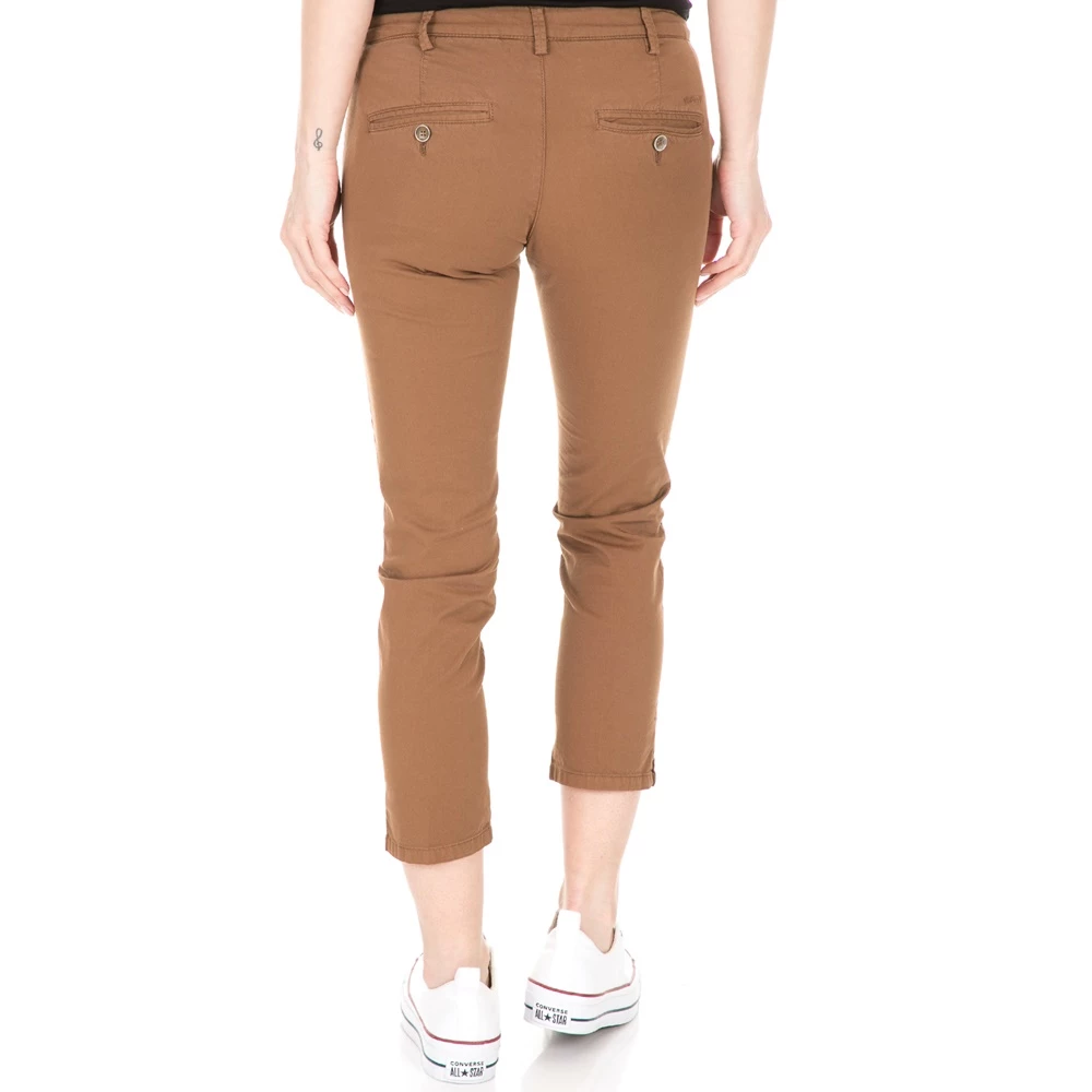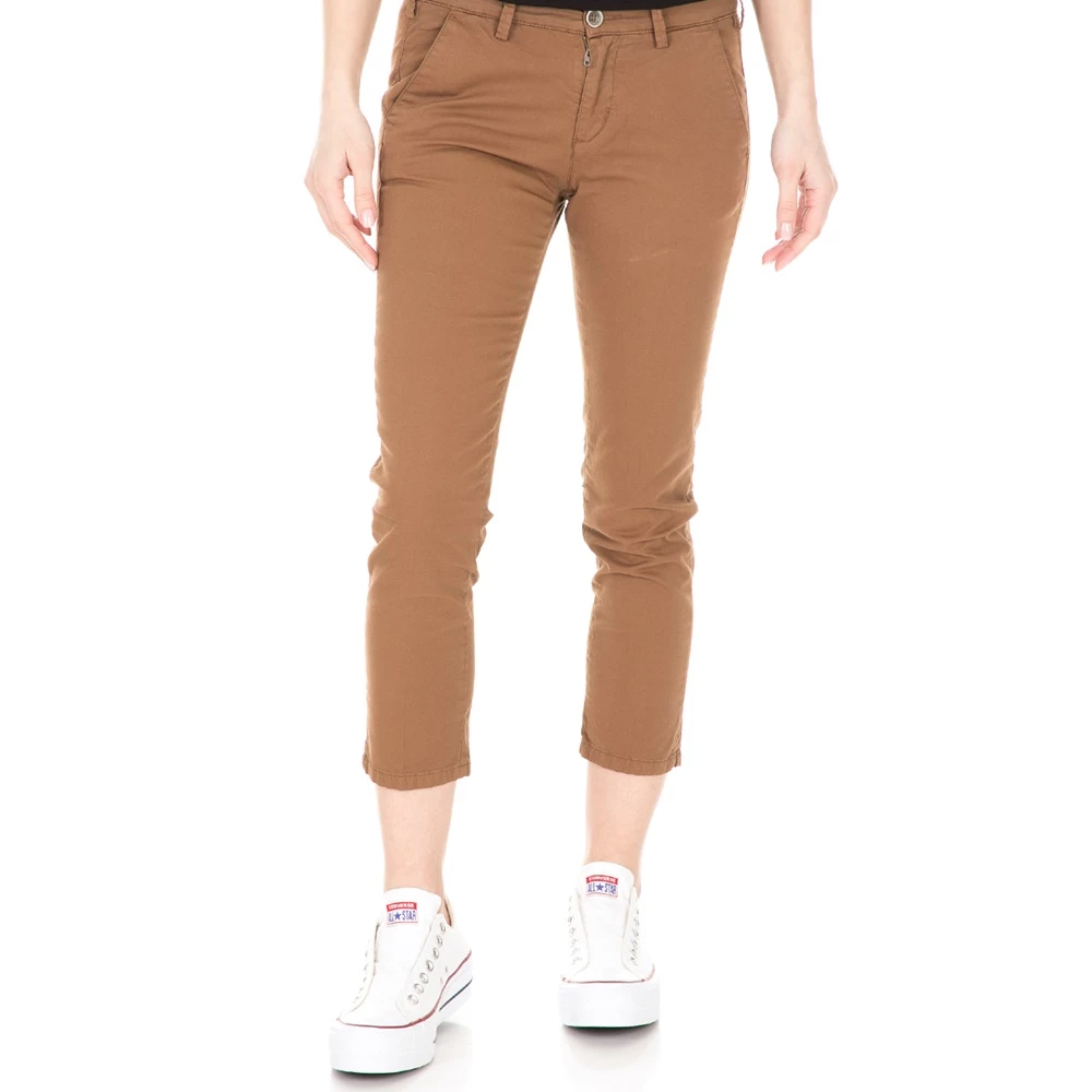Γυναικείο βαμβακερό cropped παντελόνι 40-WEFT με στενή γραμμή σε καφέ ανοιχτή απόχρωση, με τσέπες.