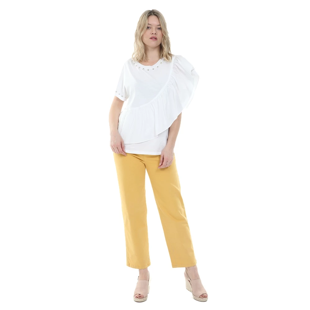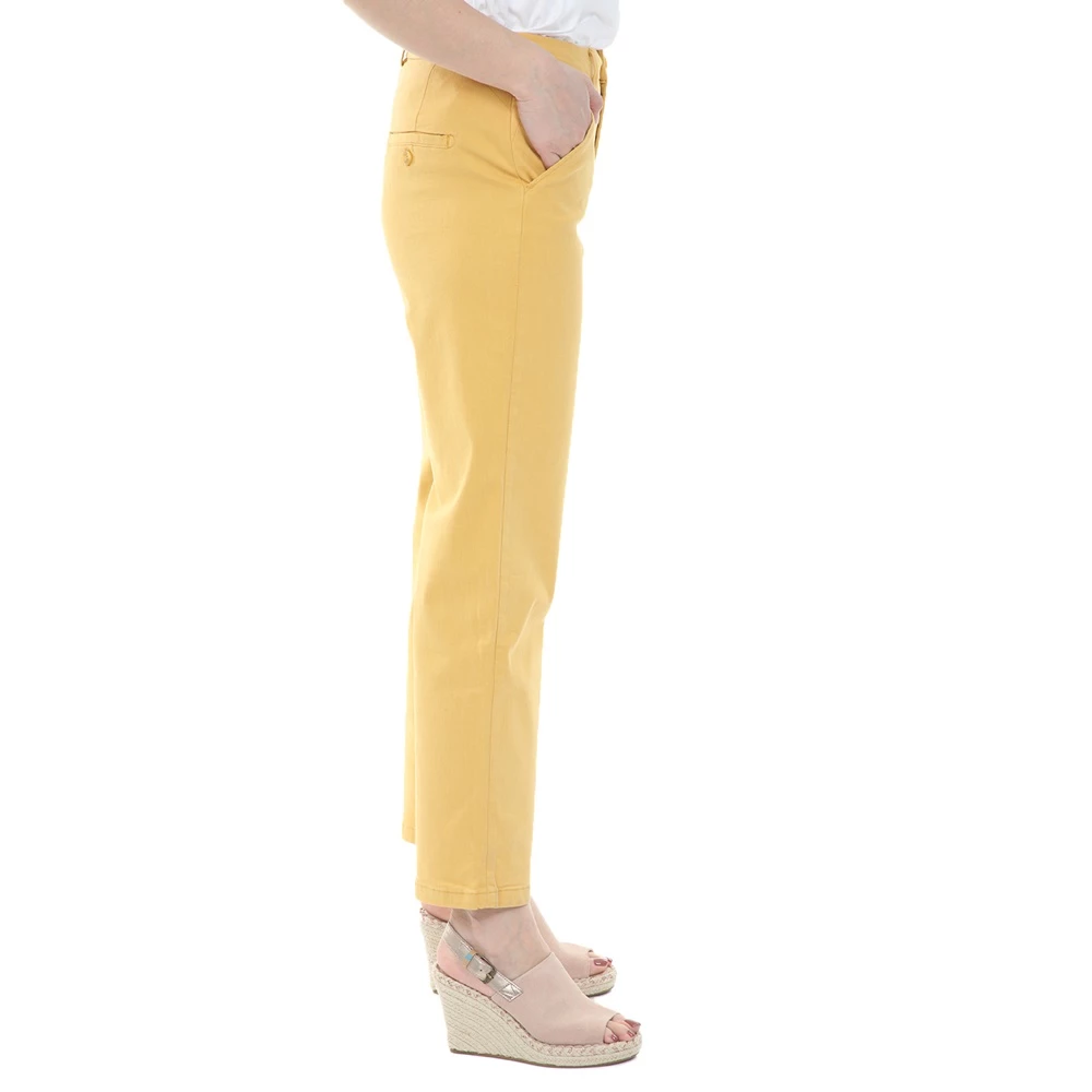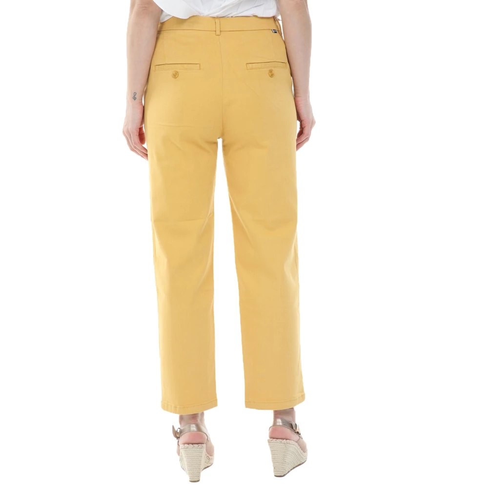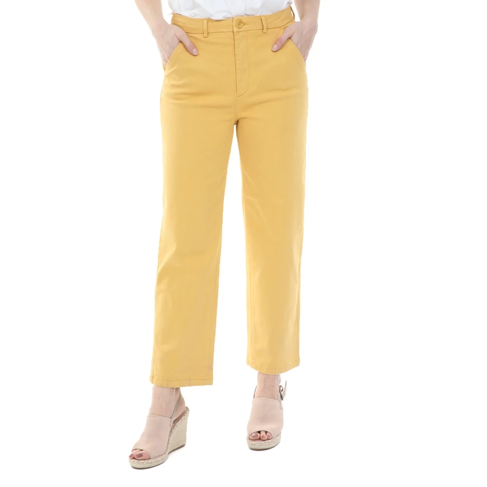 Γυναικείο παντελόνι cropped REIKO SANDY HIGH σε κίτρινη απόχρωση. Σε ίσια γραμμή, με ψηλή μέση και μήκος μέχρι τον αστράγαλο. Διαθέτει δύο τσέπες στα πλάγια και δύο τσέπες πίσω. Κλείνει με κουμπί και φερμουάρ μπροστά.