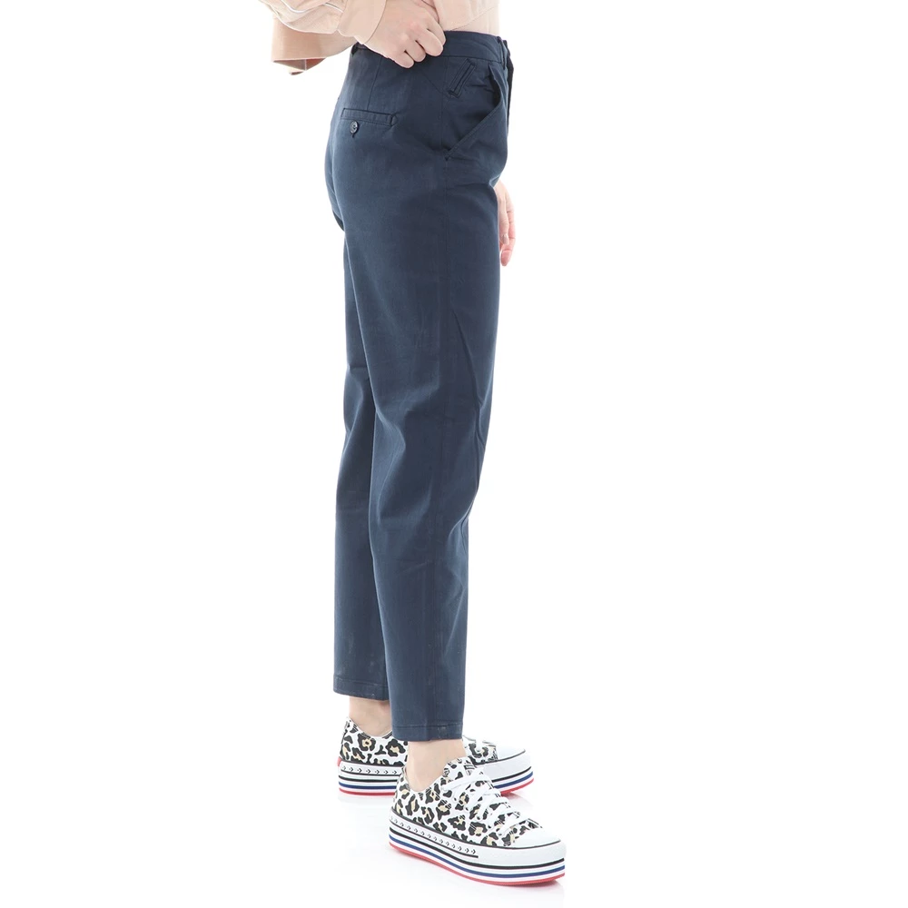 Γυναικείο παντελόνι cropped REIKO SANDY HIGH σε μπλε απόχρωση. Σε ίσια γραμμή, με ψηλή μέση και μήκος μέχρι τον αστράγαλο. Διαθέτει δύο τσέπες στα πλάγια και δύο τσέπες πίσω. Κλείνει με κουμπί και φερμουάρ μπροστά.