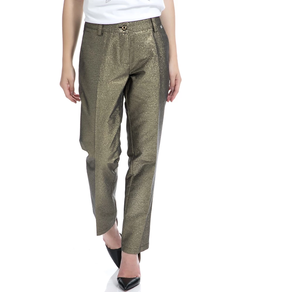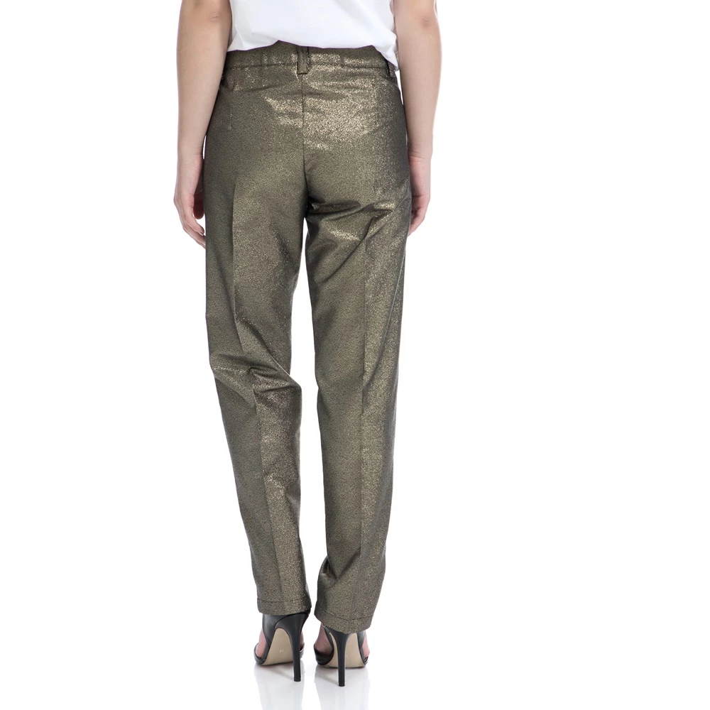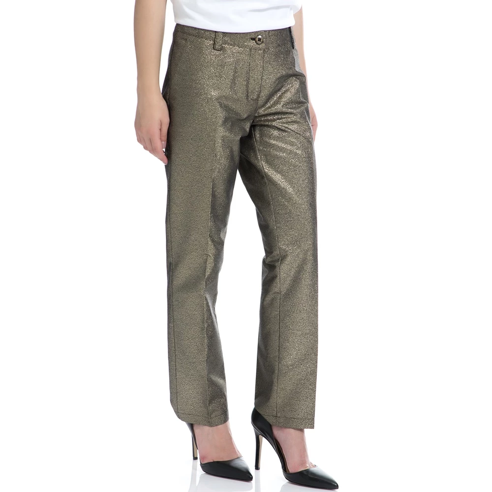 Παντελόνι σε γυαλιστερή χρυσή σκούρα απόχρωση, με αέρινη γραμμή.