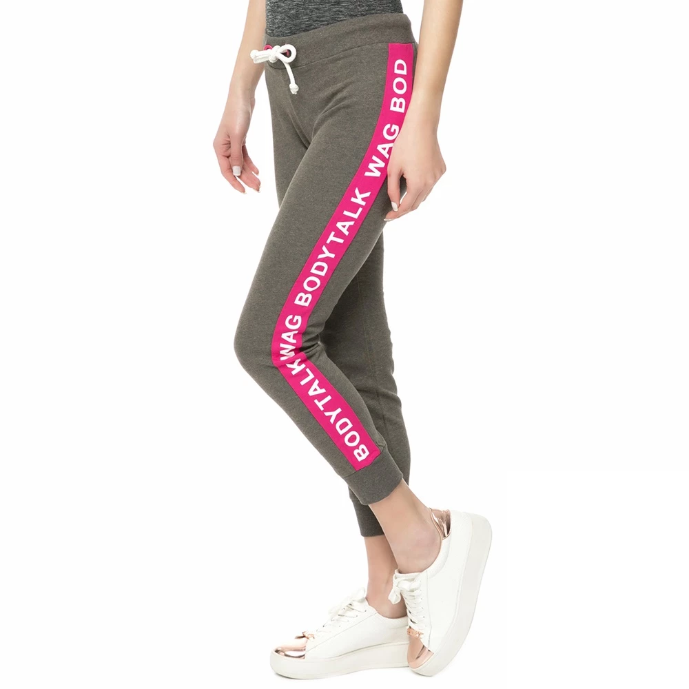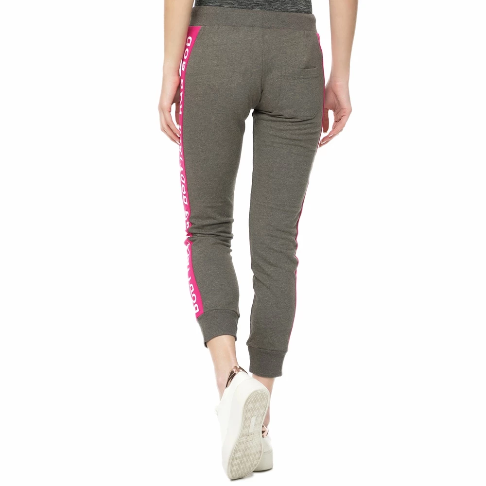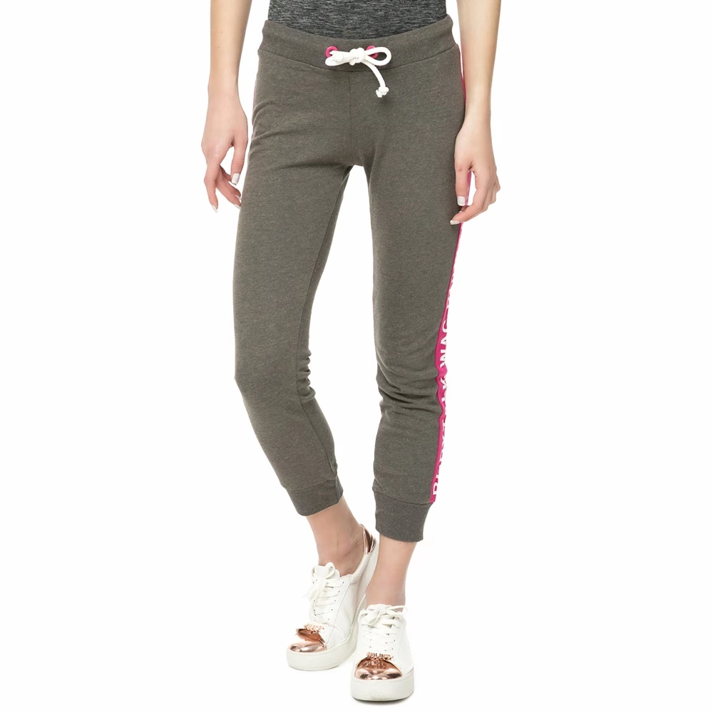 Γυναικείο παντελόνι φόρμας σε καφέ χρωμα με φούξια λωρίδα στα πλαϊνά με το λογότυπο του οίκου. Έχει στενή γραμμη και λάστιχο στο τελείωμα.