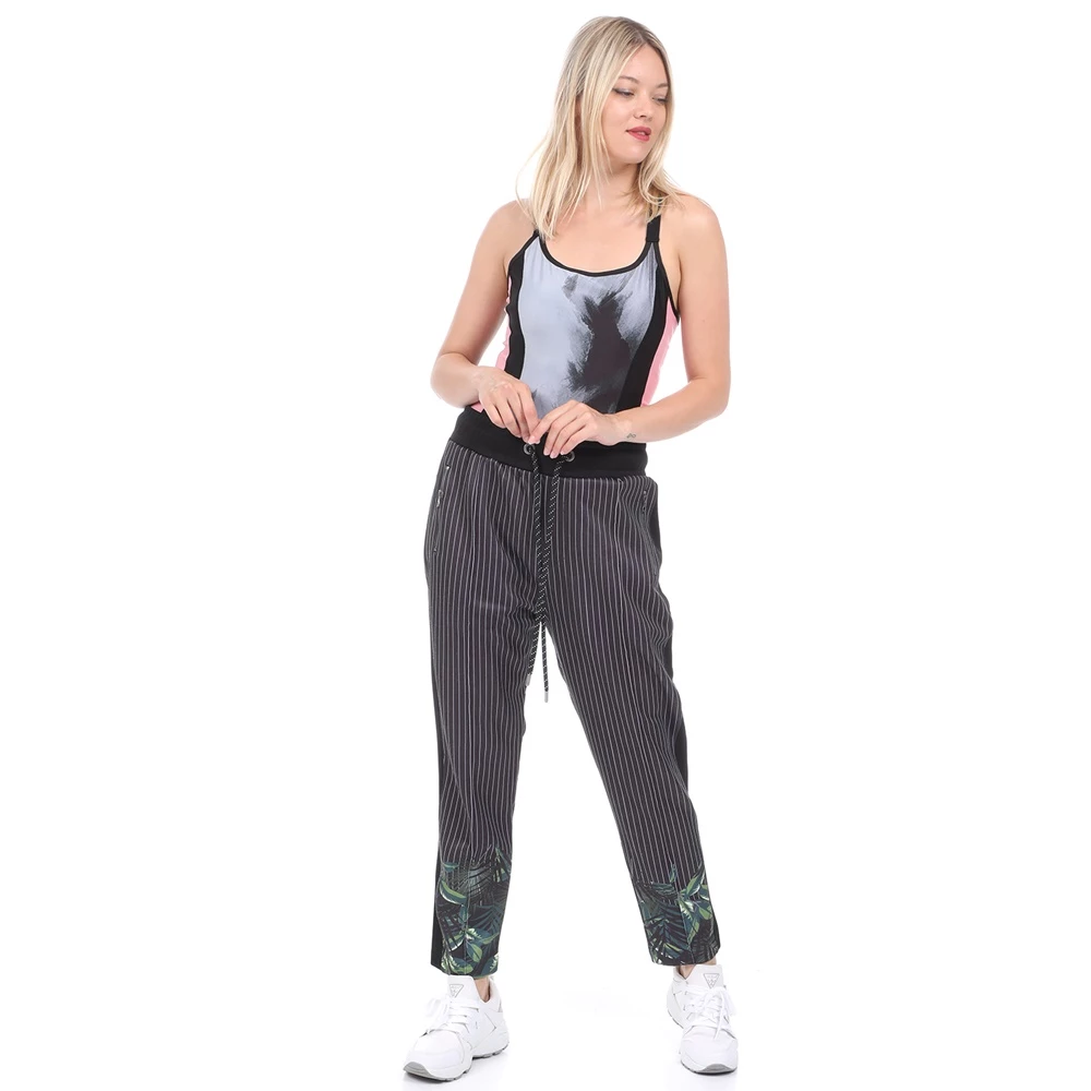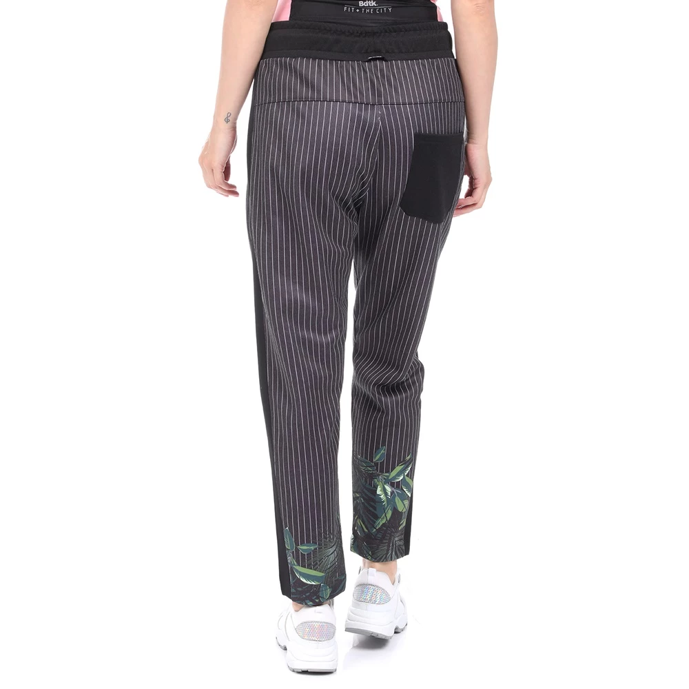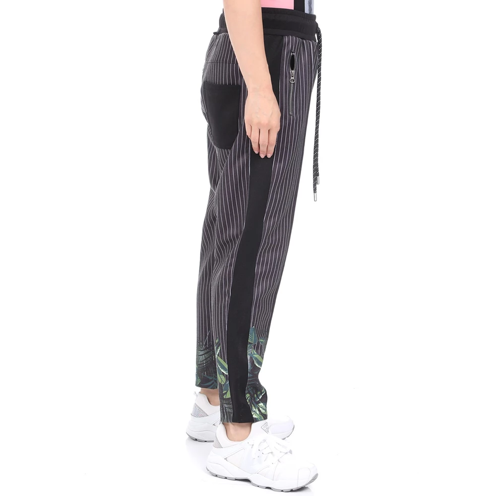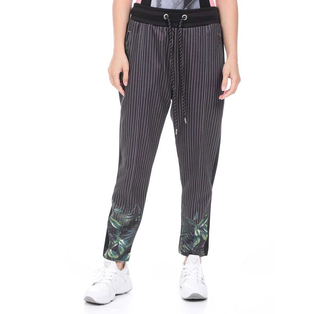 Γυναικείο παντελόνι φόρμας BODYTALK σε μαύρο χρώμα, με ριγέ λευκό μοτίβο και floral τύπωμα στο κάτω μέρος. Σε γραμμή carrot με χαλαρή εφαρμογή. Διαθέτει λάστιχο με κορδόνι στη μέση, δύο τσέπες στα πλάγια και μία τσέπη πίσω.