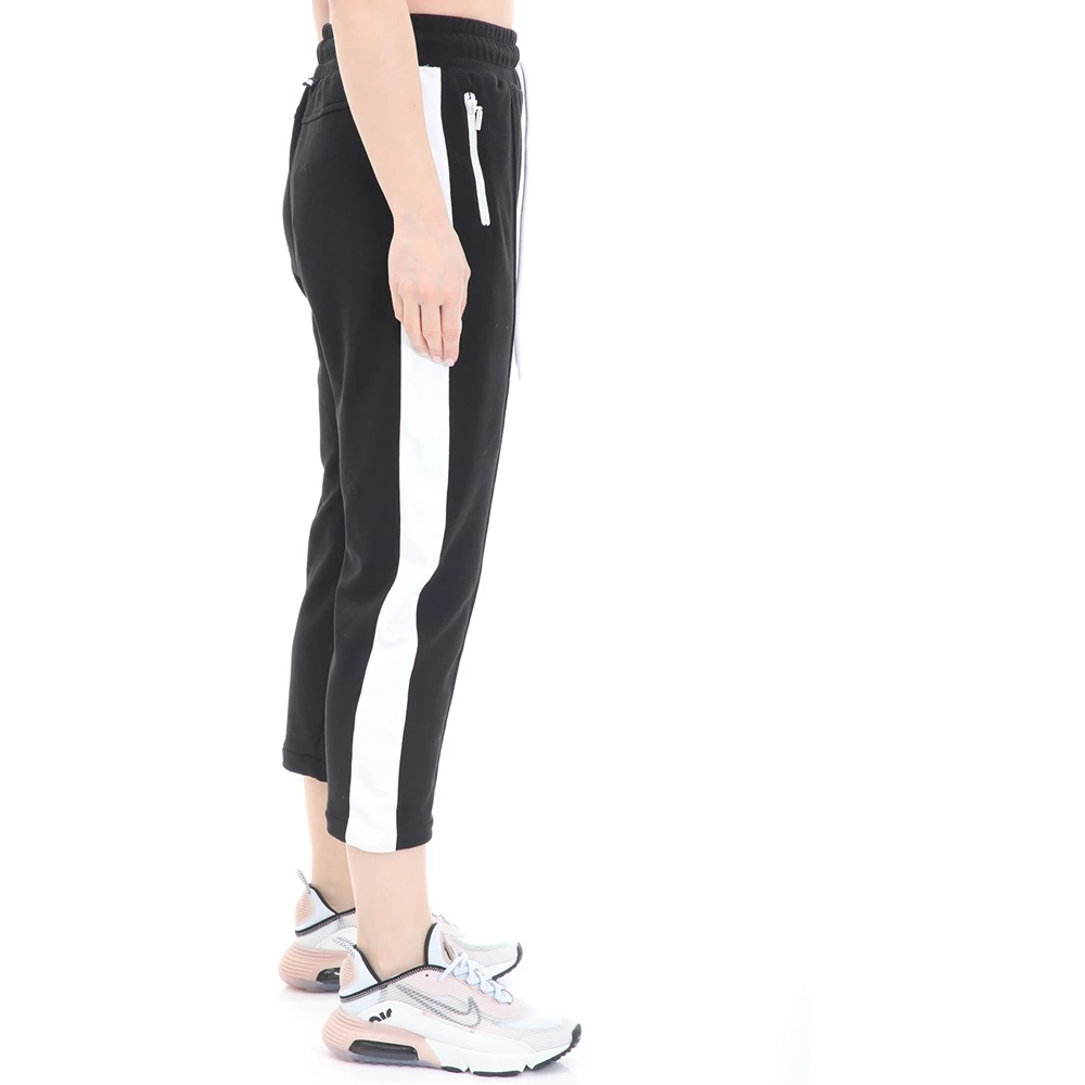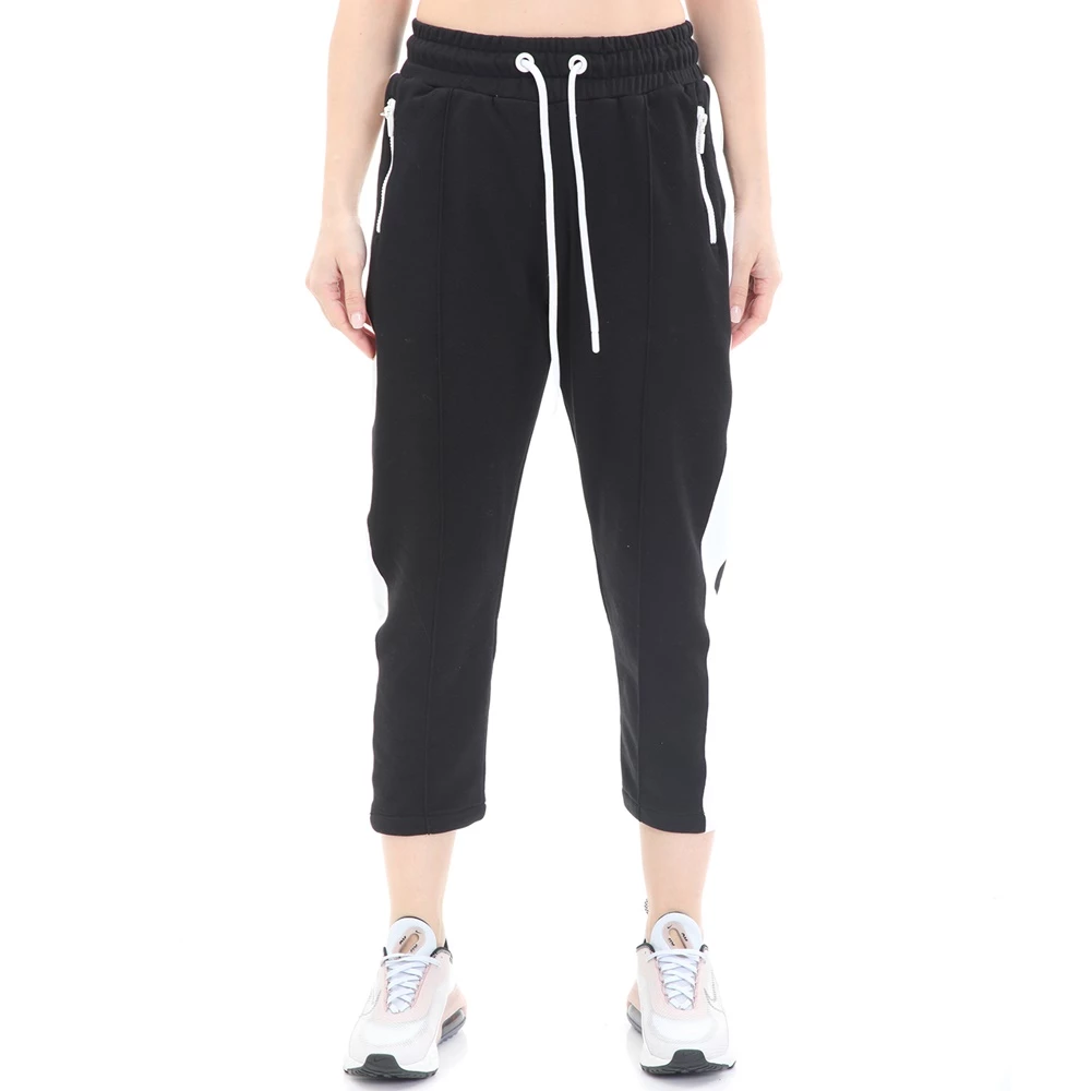 Γυναικείο παντελόνι φόρμας BODYTALK σε μαύρο χρώμα, με λευκές φάσες στα πλαϊνά. Σε ίσια γραμμή, με μήκος 7/8. Διαθέτει λάστιχο με κορδόνι στη μέση και δύο τσέπες με φερμουάρ στα πλάγια.