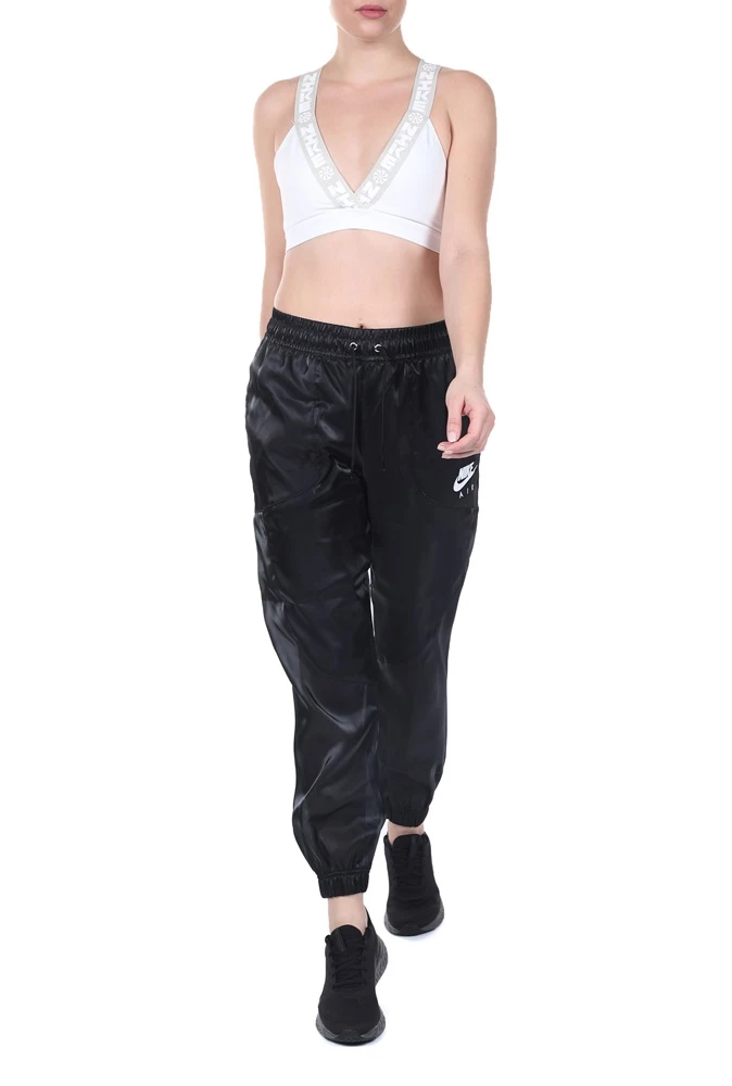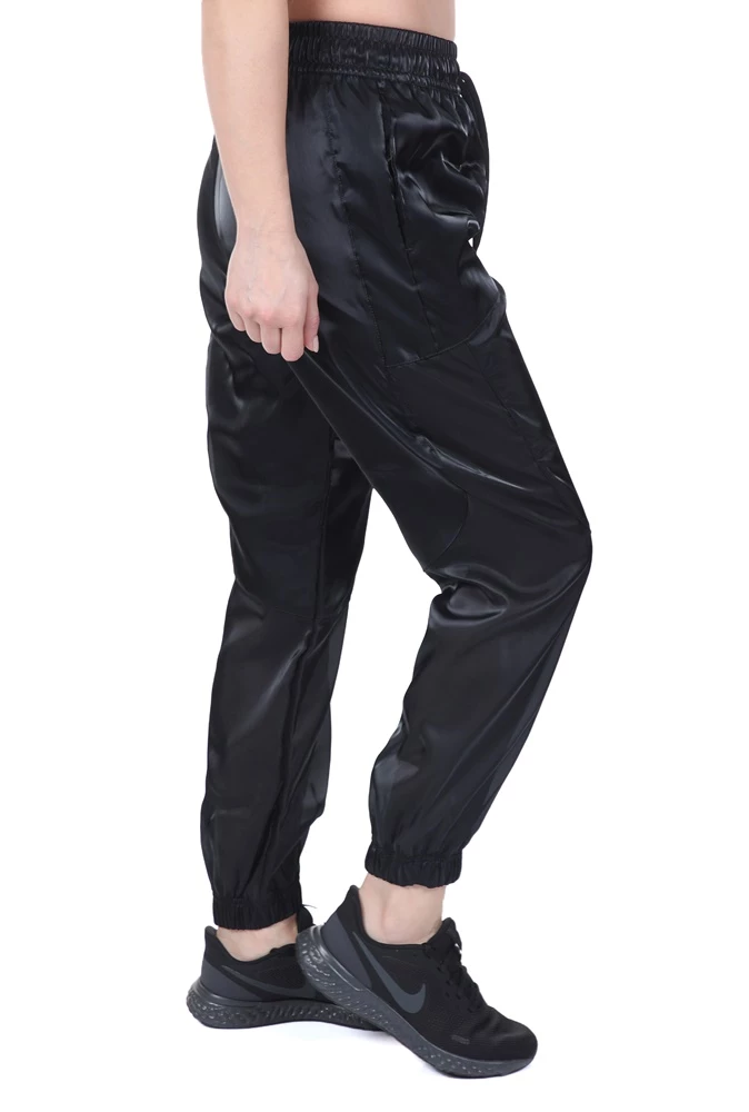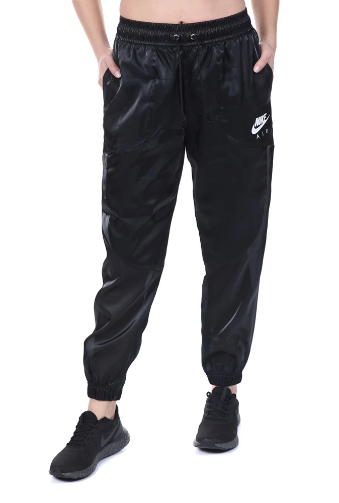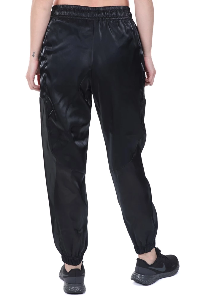 Γυναικείο παντελόνι φόρμας NIKE σε μαύρο χρώμα. Σε ίσια γραμμή, με γυαλιστερή όψη. Διαθέτει λάστιχο με κορδόνι στη μεση και λάστιχο στους αστραγάλους. Δύο τσέπες στα πλάγια.