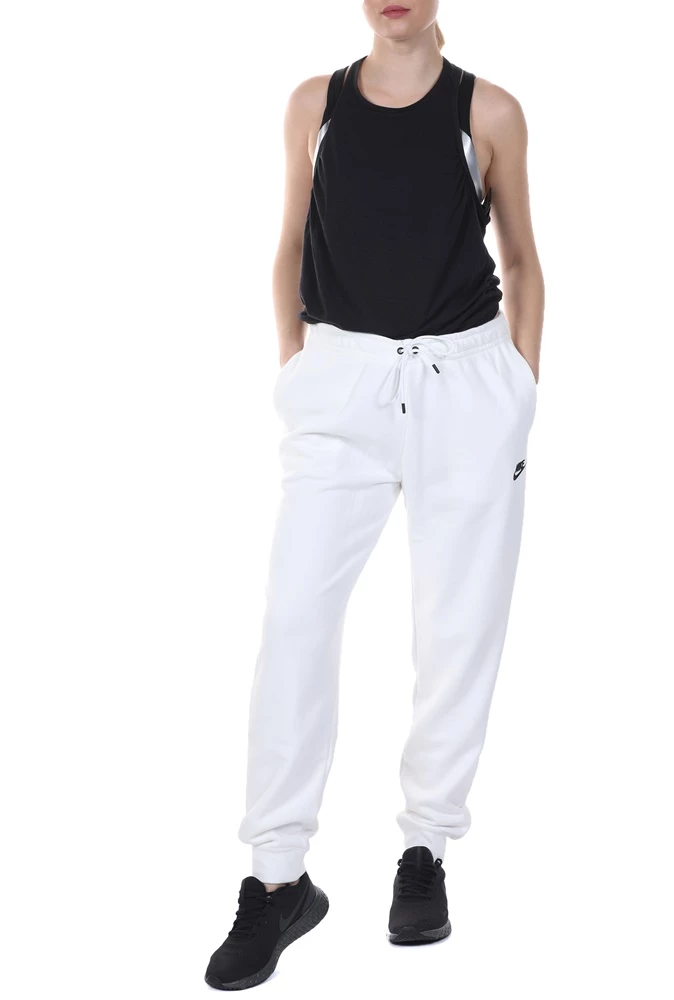 Γυναικείο παντελόνι φόρμας NIKE σε λευκό χρώμα. Σε άνετη γραμμή, από βαμβακερό φούτερ. Διαθέτει λάστιχο με κορδόνι στη μέση και δύο τσέπες στα πλάγια. Λάστιχο ριμπ στους αστραγάλους.