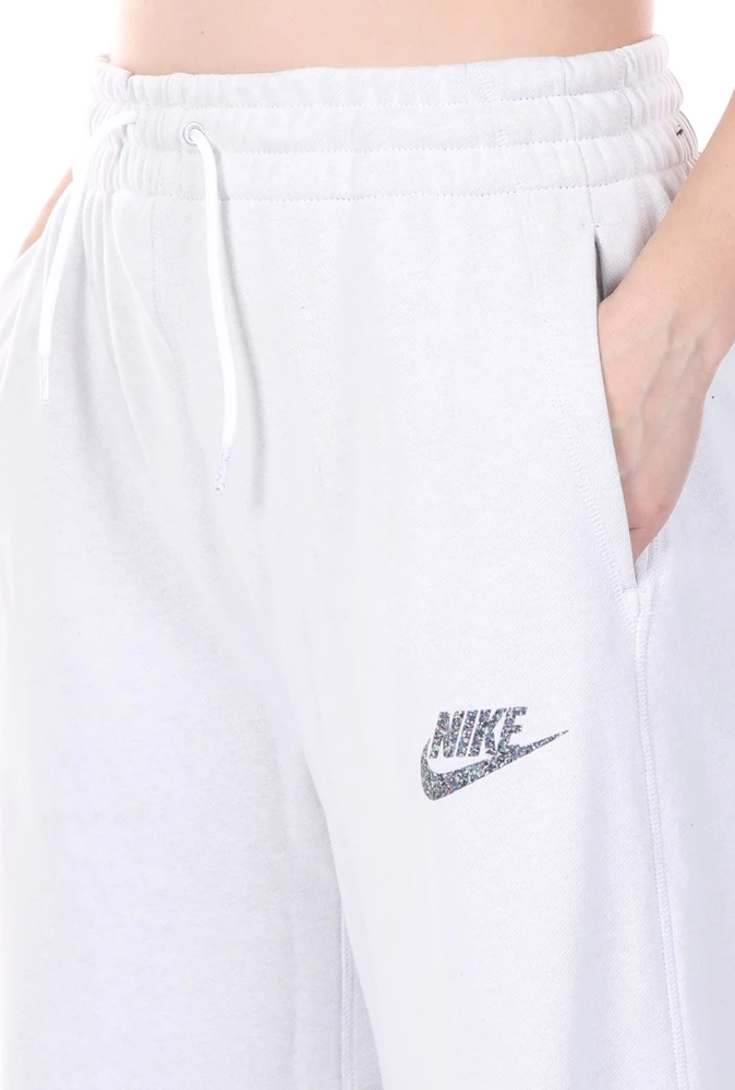 Γυναικείο παντελόνι φόρμας NIKE σε γκρι απόχρωση. Σε ίσια και φαρδιά γραμμή, από βαμβακερό φούτερ. Διαθέτει λάστιχο με κορδόνι στη μέση και δύο τσέπες στα πλάγια.