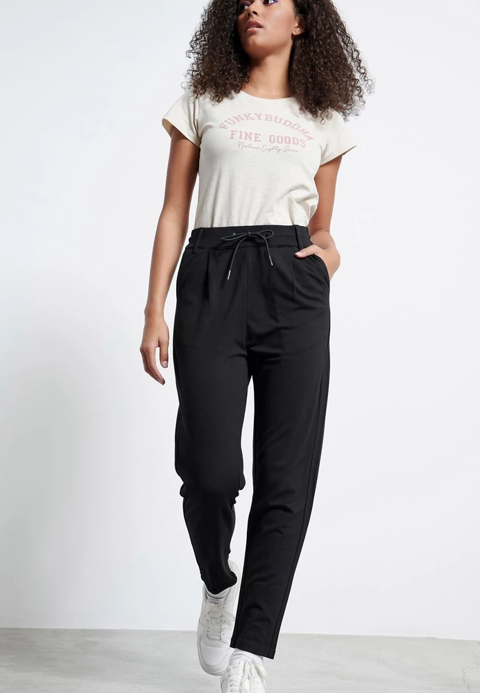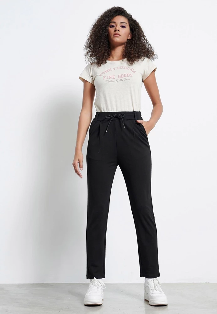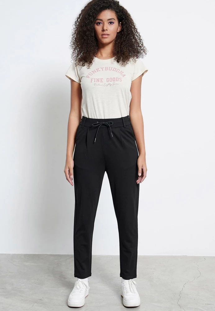 Γυναικείο παντελόνι FUNKY BUDDHA σε μαύρο χρώμα. Διαθέτει λάστιχο και κορδόνι στη μέση.