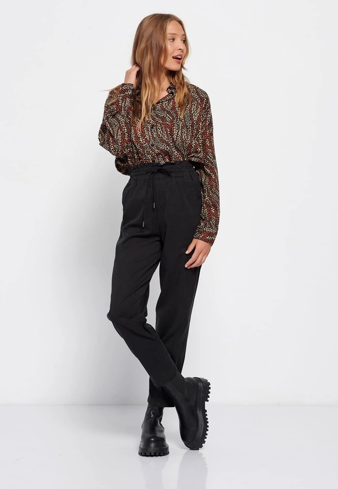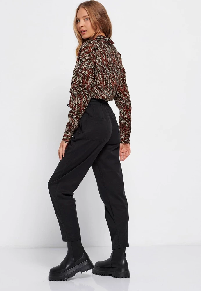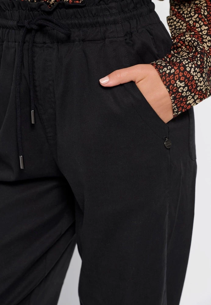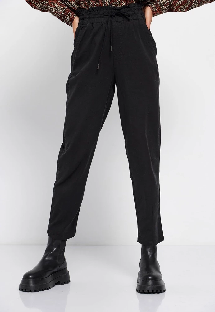 Γυναικείο παντελόνι FUNKY BUDDHA σε μαύρο χρώμα. Από βαμβακερό, με λάστιχο και κορδόνι στη μέση.