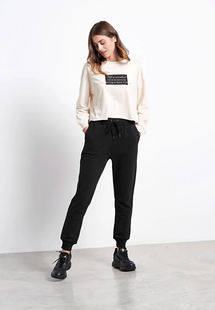 Γυναικείο παντελόνι FUNKY BUDDHA σε μαύρο χρώμα. Έχει λάστιχο και κορδόνι στη μέση.