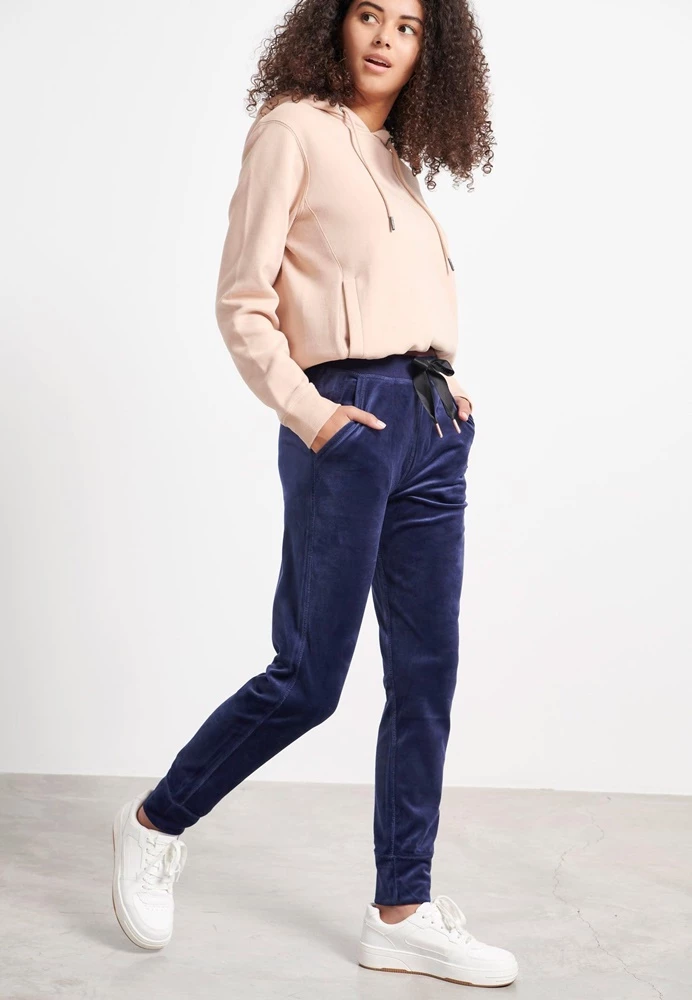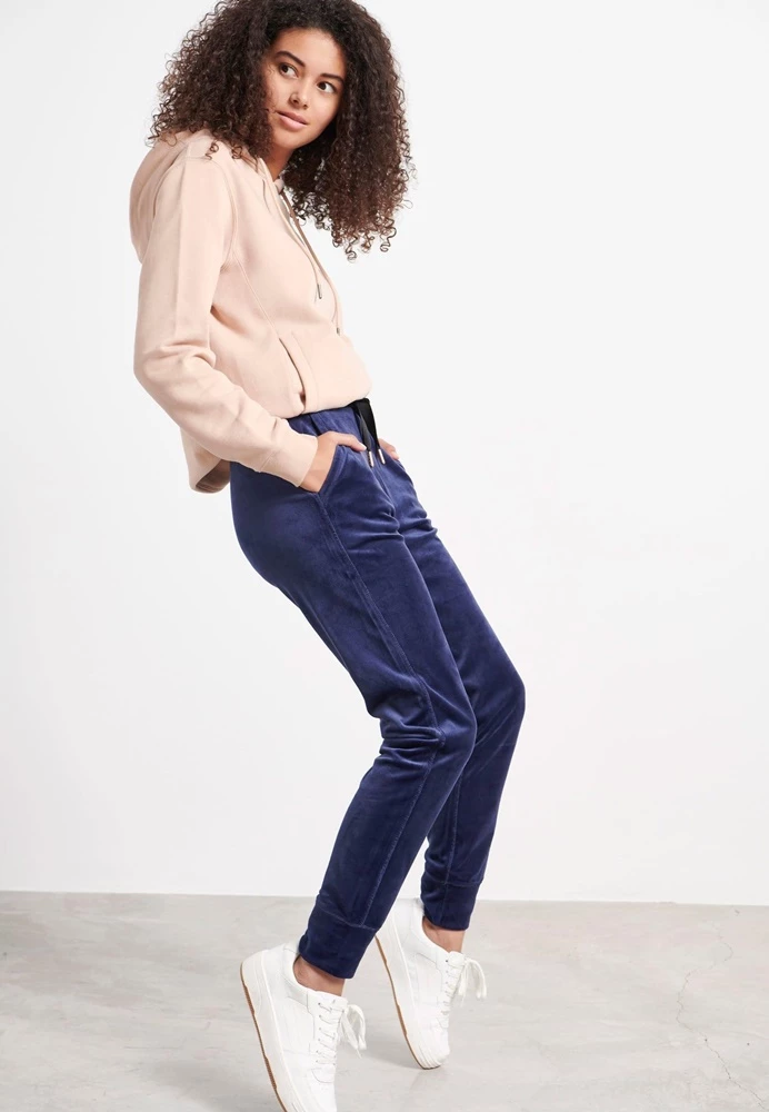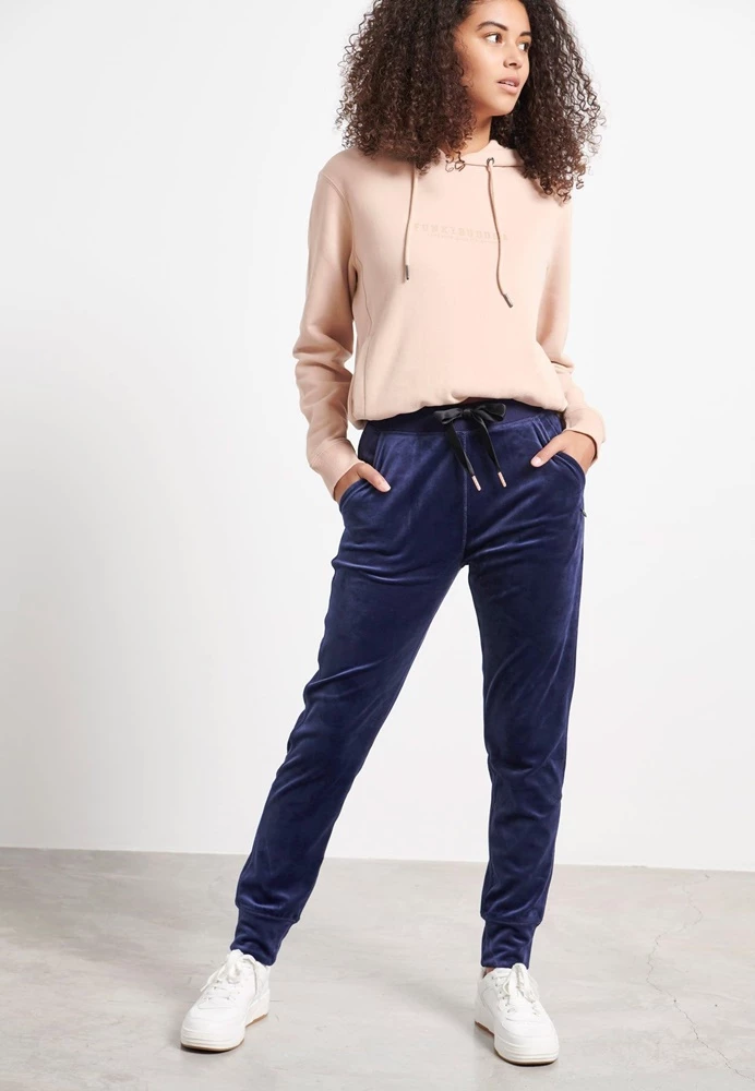 Γυναικείο παντελόνι FUNKY BUDDHA βελουτέ μπλε χρώμα. Έχει λάστιχο και κορδόνι στη μέση. Διαθέτει μπροστινές τσέπες, ελαστικό τελείωμα και rib στη μέση