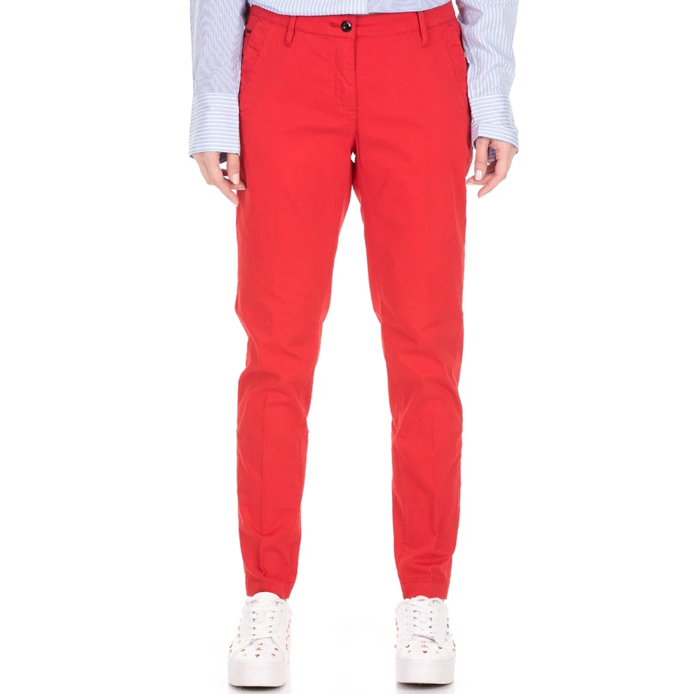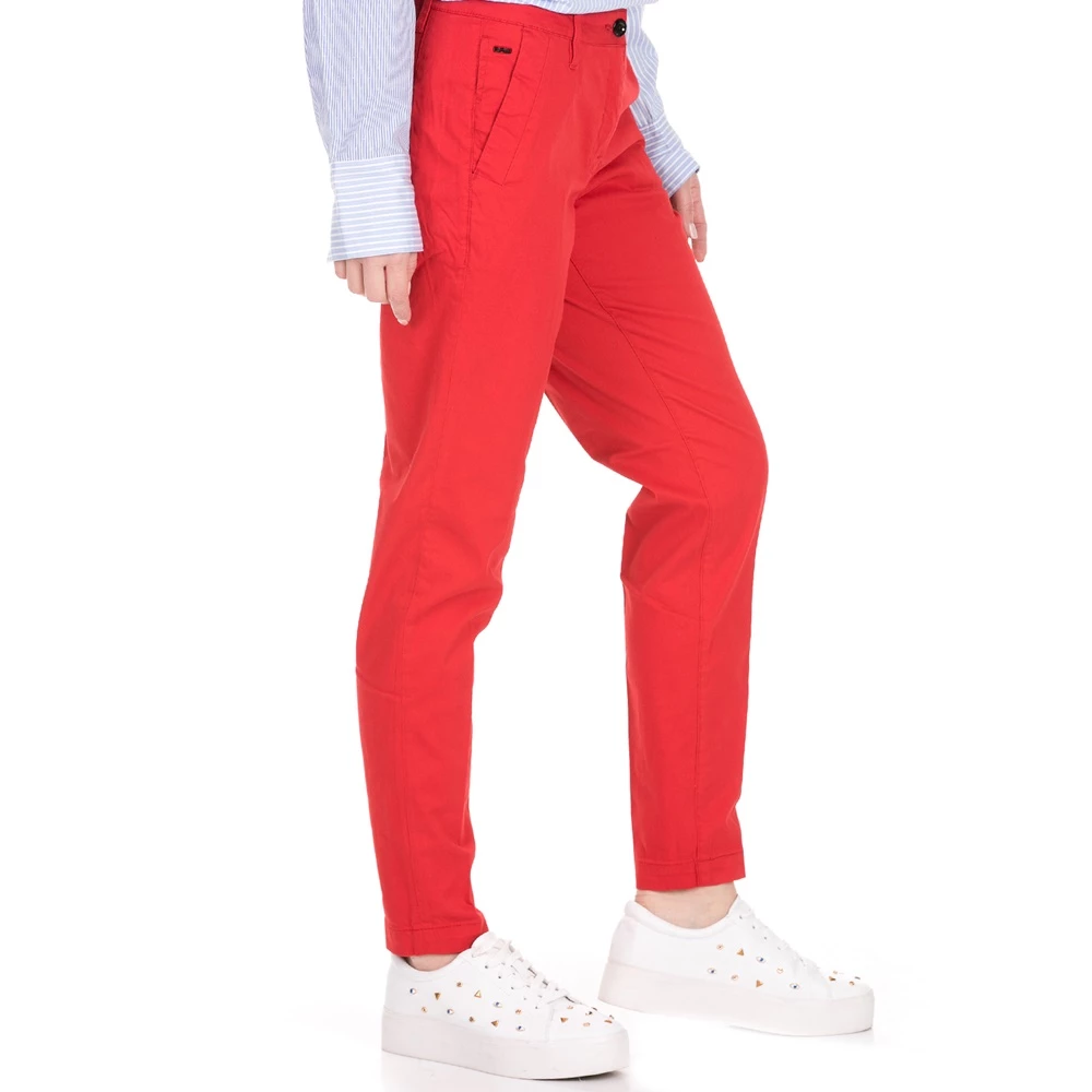 Γυναικείο chino παντελόνι G-STAR RAW σε κόκκινη απόχρωση. Με ελαστική skinny εφαρμογή και μήκος μέχρι τον αστράγαλο. Διαθέτει δύο τσέπες στα πλάγια και δύο τσέπες με κουμπάκι πίσω. Κλείνει με κουμπί και φερμουάρ μπροστά.