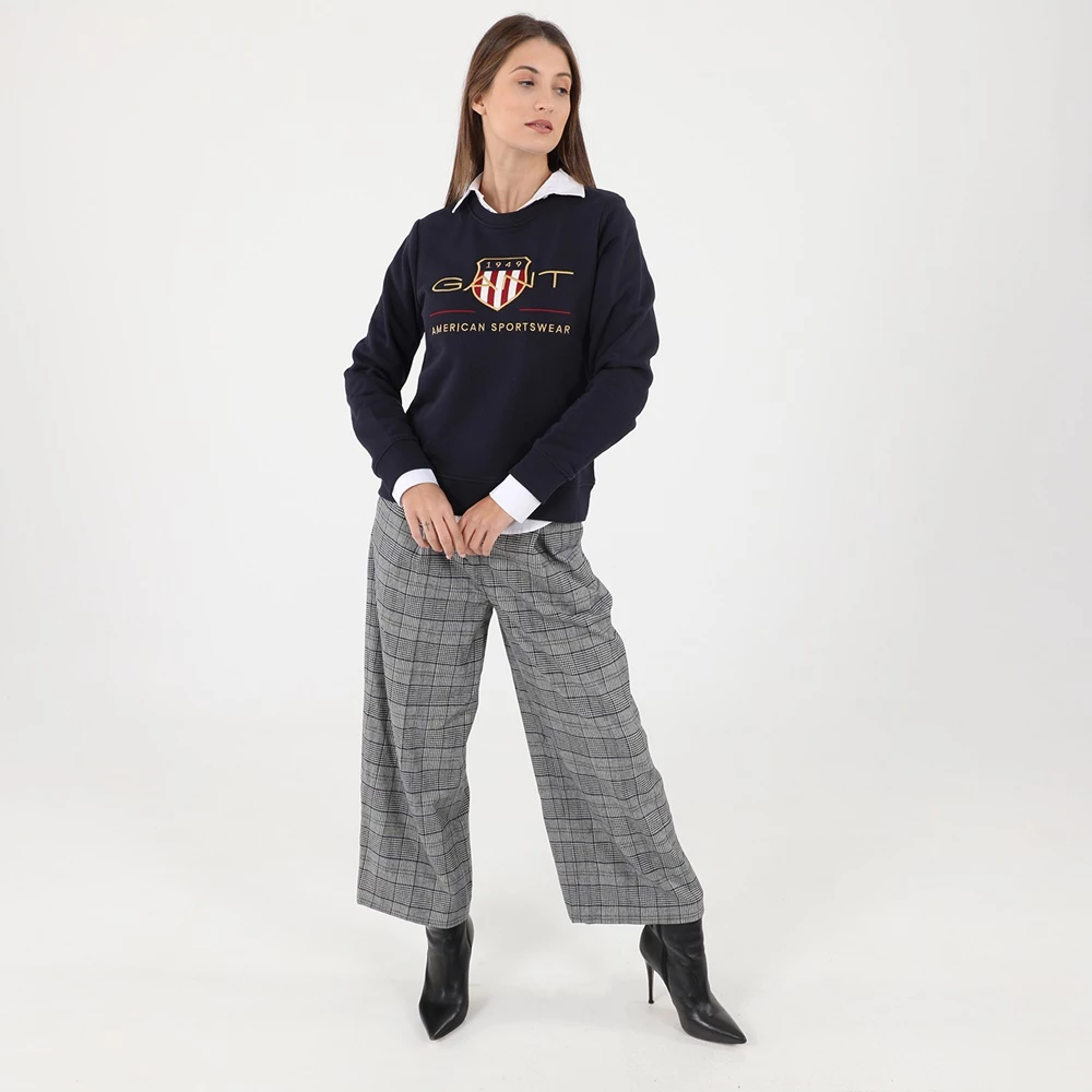 Γυναικείο παντελόνι GANT σε γκρι απόχρωση, με καρό μοτίβο. Διαθέτει δύο τσέπες στα πλάγια και κλείνει με κουμπί και φερμουάρ μπροστά.