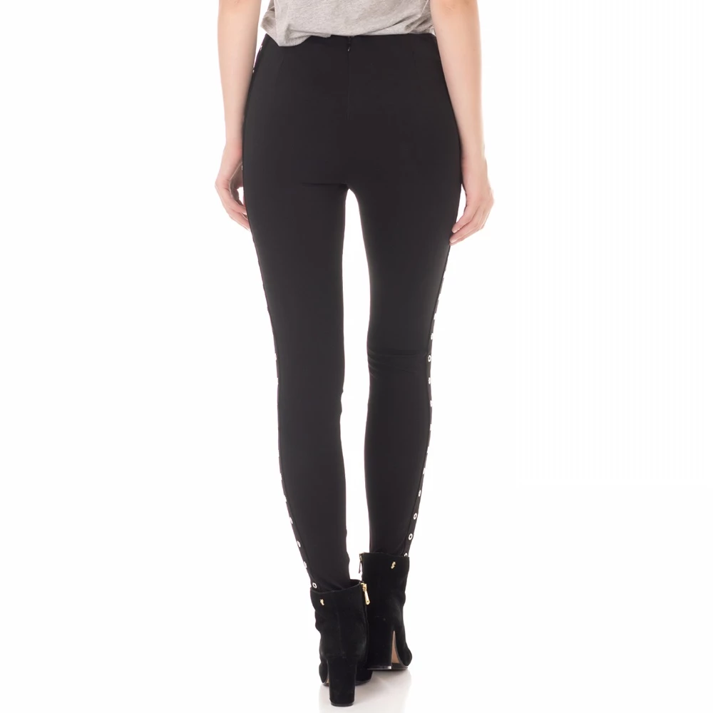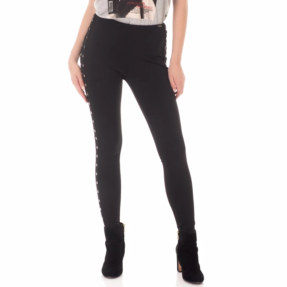 Γυναικείο παντελόνι GUESS BEATRIZ σε μαύρο χρώμα. Εφαρμοστή γραμμή. Κλείσιμο πίσω με κρυφό φερμουάρ. Ασημένια τρουκς και στις δύο πλευρές. Πολύ θηλυκό και άνετο, με τον γνωστό ροκ χαρακτήρα του brand, θα τραβήξει τα βλέμματα σε κάθε σας εμφάνιση!