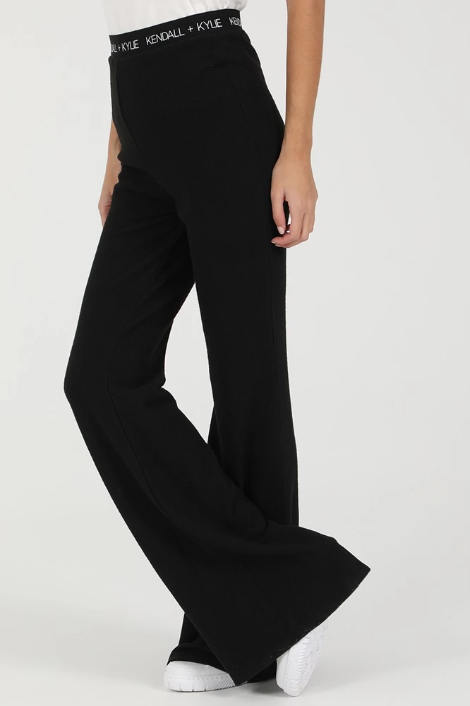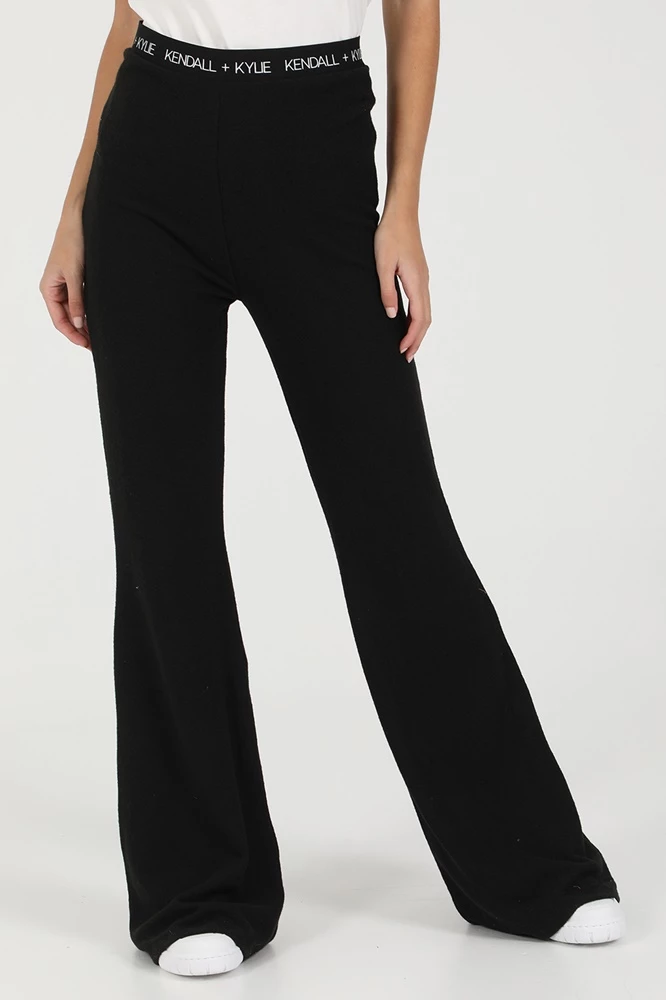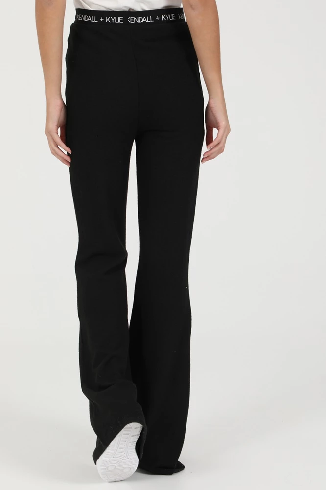 Γυναικείο παντελόνι KENDALL + KYLIE σε μαύρο χρώμα. Είναι ψηλόμεσο, σε στιλ καμπάνας. Διαθέτει λάστιχο στη μέση με το λογότυπο περιμετρικά.